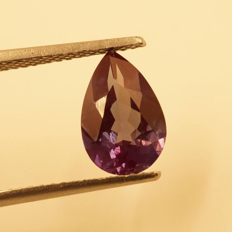 พลอยอเล็กซานไดรต์ธรรมชาติ 1.60 กะรัต รูปทรงลูกแพร์ เจียระไนเหลี่ยม ขนาด 9.5x6.5x4 มม. รุ่น N-200 ยี่ห้อ HAYAAT GEMS สำหรับทำเครื่องประดับ