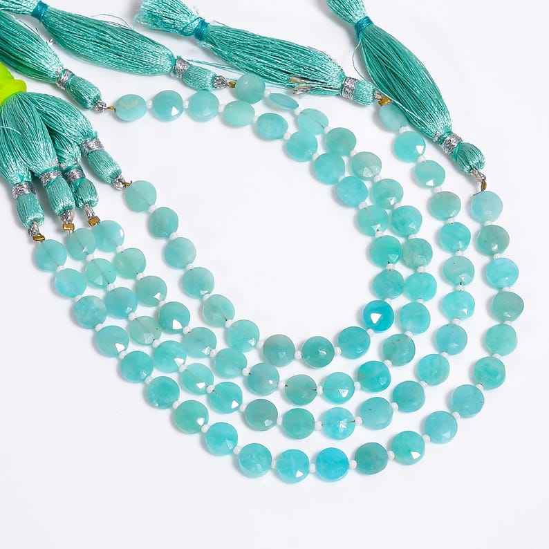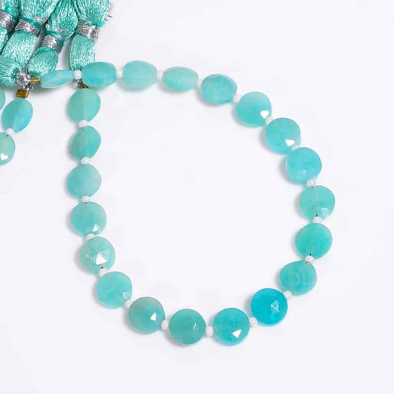 ลูกปัดอัญมณีรูปเหรียญแฟนซีแบบเหลี่ยมเพชรพลอยสำหรับทำเครื่องประดับหินสีฟ้า10-11มม.