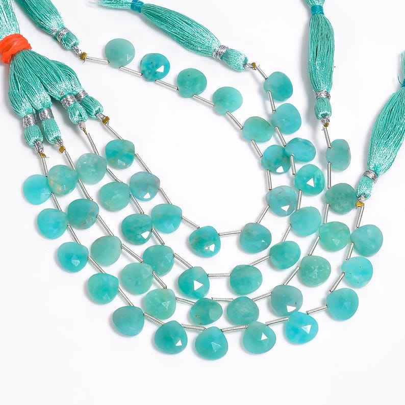 ลูกปัดอเมซอนไนต์ธรรมชาติทรงหัวใจเจียระไนแบบบริโอเล็ตสำหรับทำเครื่องประดับ ขนาด 10.50-10.75 มม. ลูกปัดแบบหลวมจากอินเดีย