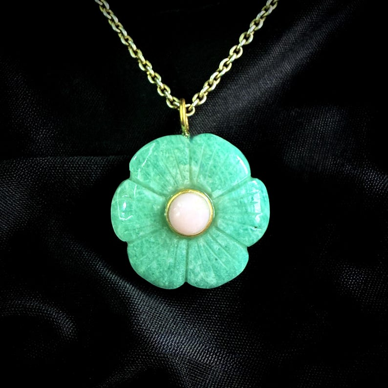 Natural Amazonite Flower Carved Pendant Necklace for Women Gold Plated Loose Gemstone Jewelry Custom Handmade Stone Charms