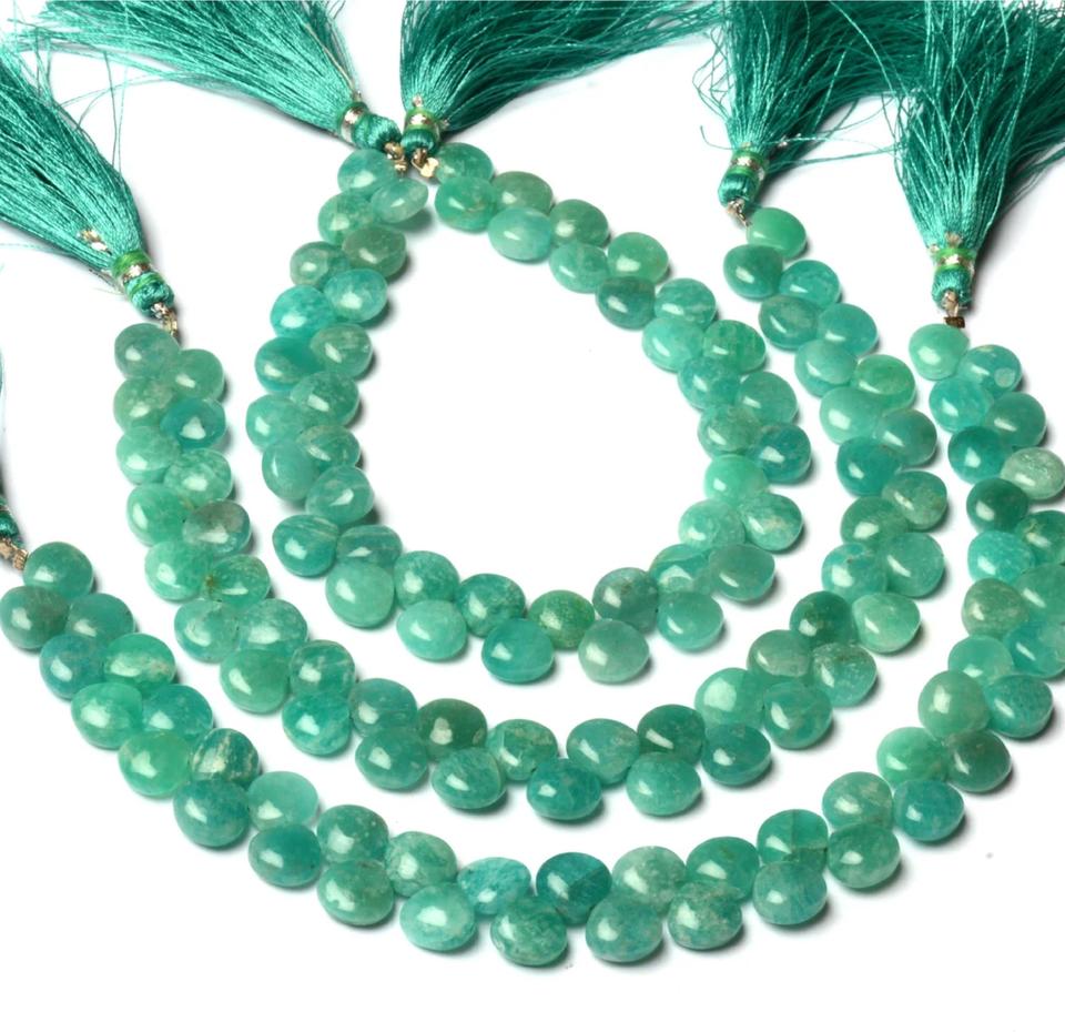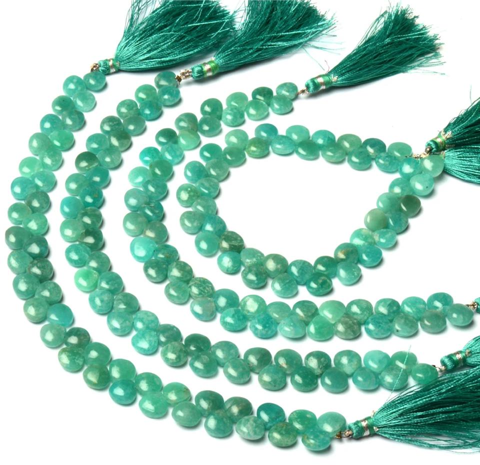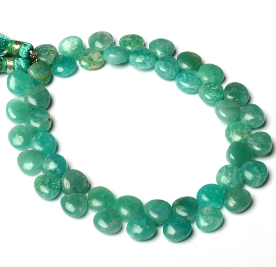 พลอยอะเมโซไนต์ธรรมชาติ ขนาด 3.5-4.5 มม. รูปหัวใจเรียบเนียน สีฟ้า ลูกปัดขนาด 8 นิ้ว/เส้น