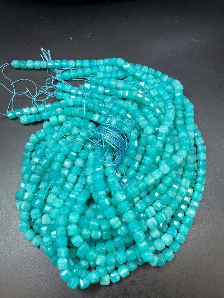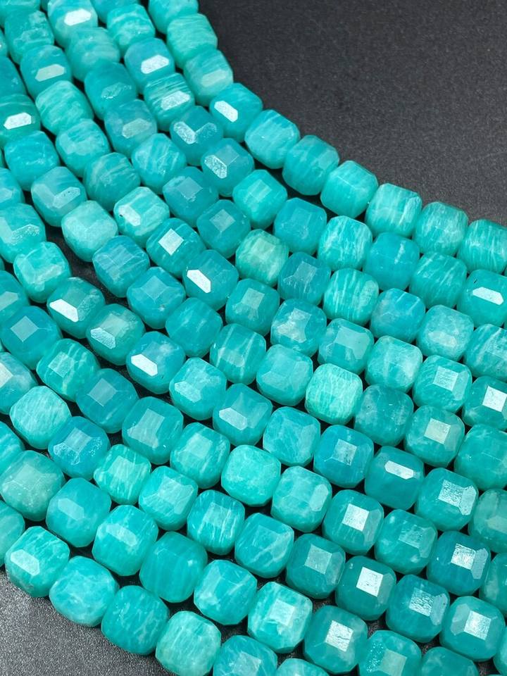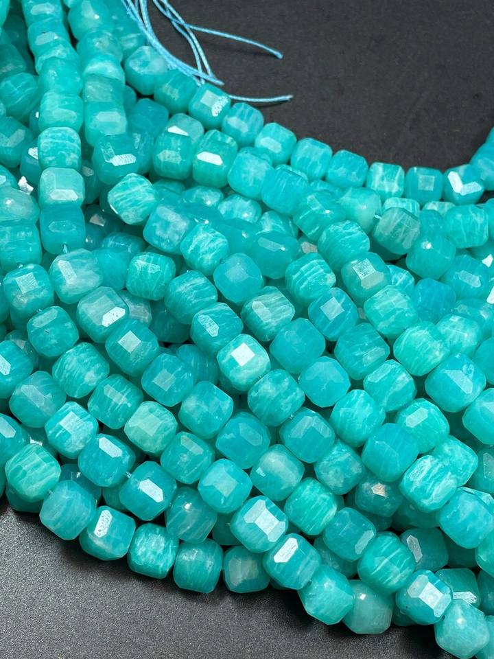 ลูกปัดอเมซอนไนต์ธรรมชาติทรงลูกบาศก์ สีฟ้าสวยงาม คุณภาพสูง สำหรับทำเครื่องประดับ