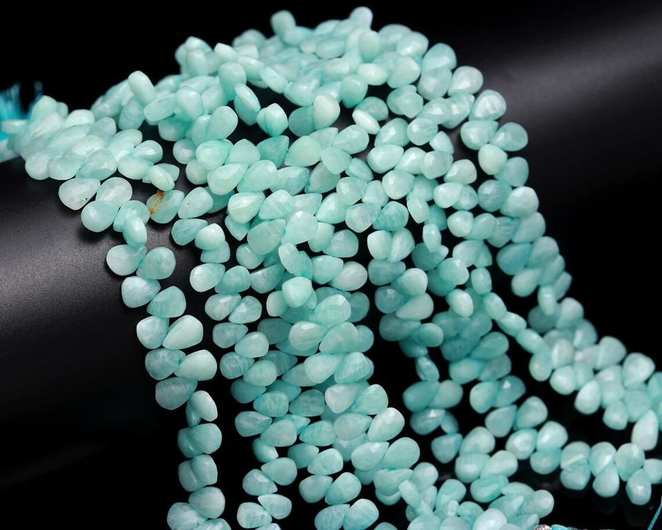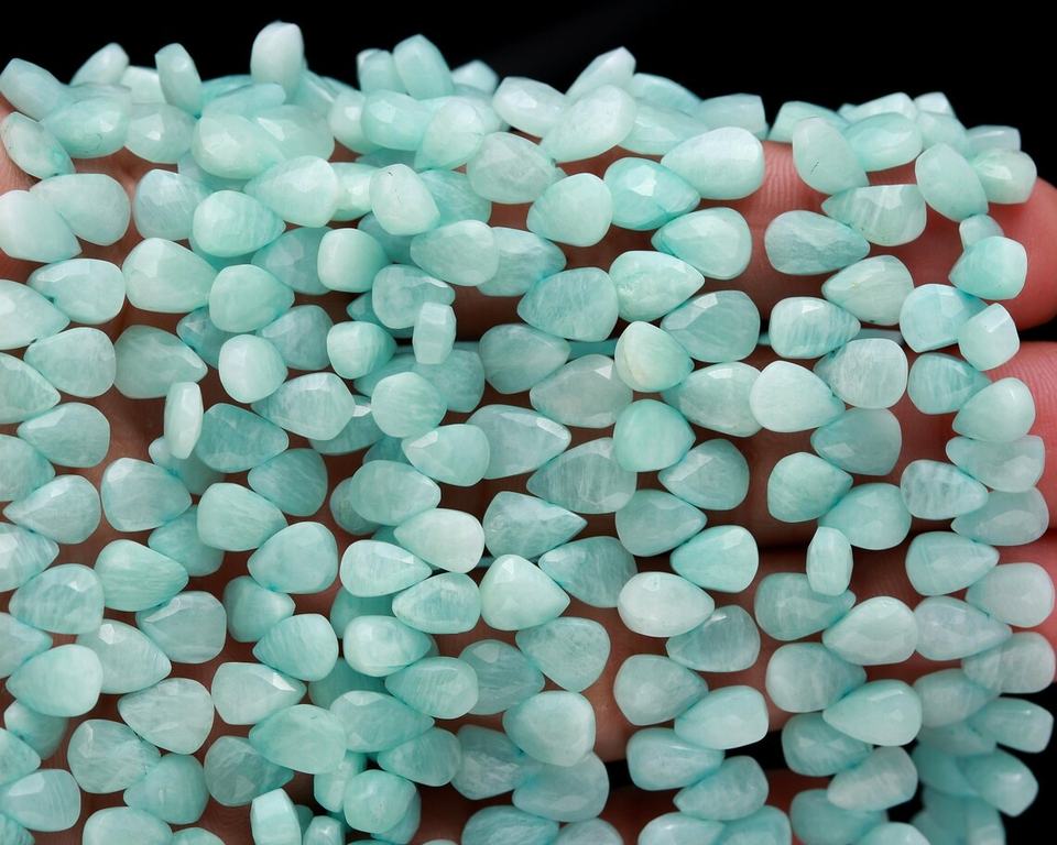 ลูกปัดอะเมซอนไนต์ทรงหยดน้ำเหลี่ยมเพชรพลอย