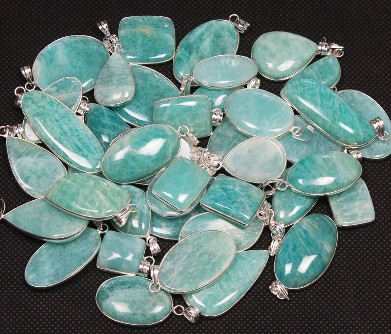 จี้พลอยอเมซอนธรรมชาติทำด้วยมือจี้สร้อยคอเครื่องประดับจี้คริสตัลอเมซอนไนท์สำหรับผู้หญิงขายส่งจี้จำนวนมาก