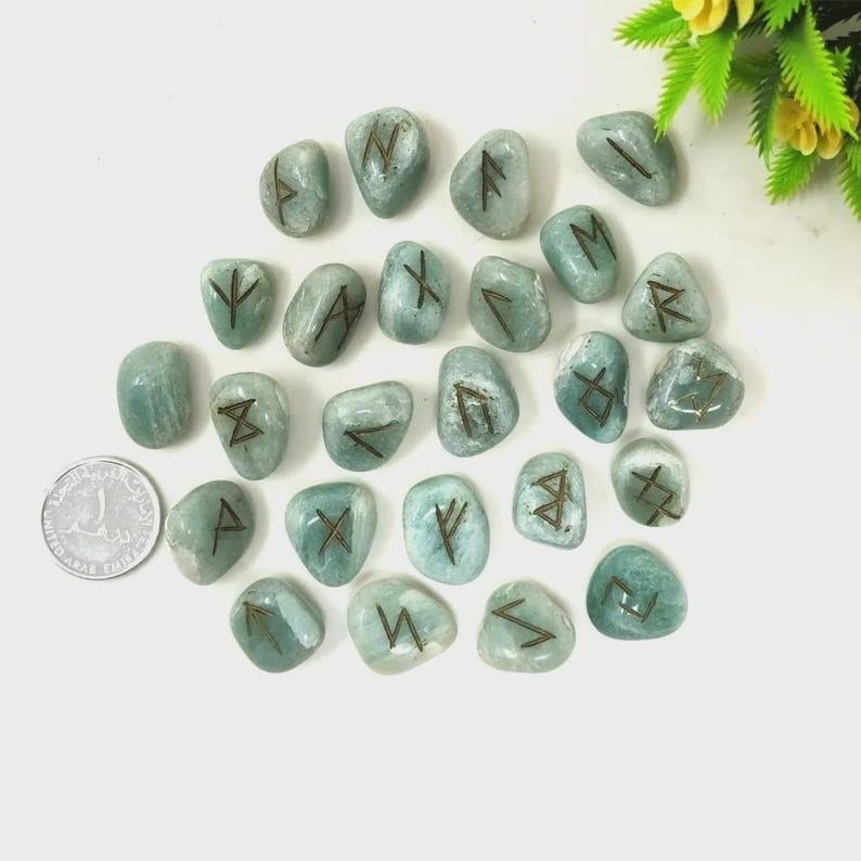 ชุดหินอะมาโซไนต์และคริสตัลรูนทำมือระดับพรีเมียมจากธรรมชาติ สไตล์ฮวงจุ้ยแห่งความรัก พร้อมหินบำบัดมุนตาฮะอะเกตแกะสลัก