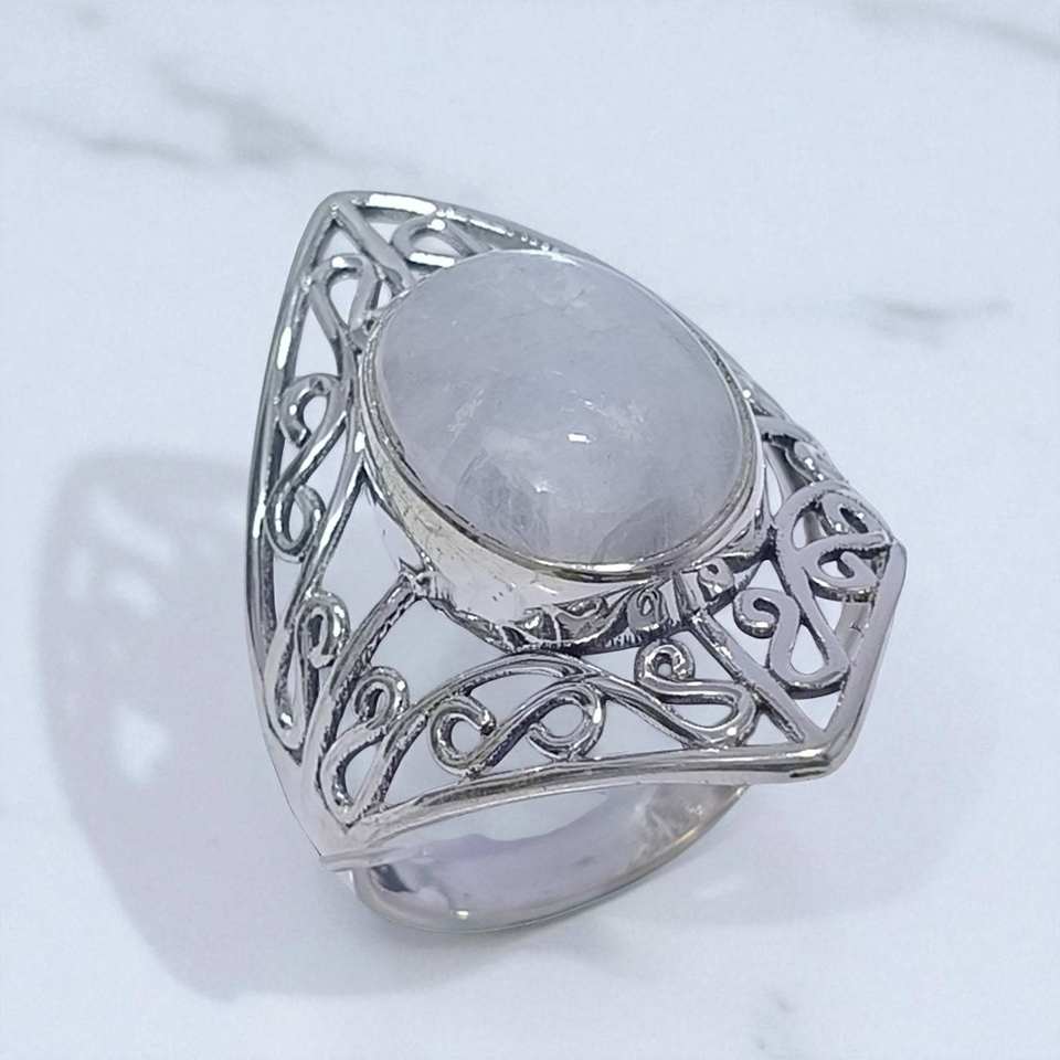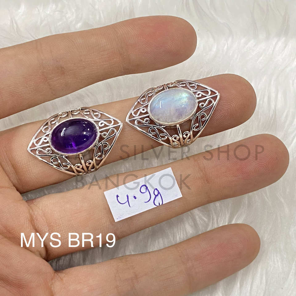 แหวนเงินแท้ 925 ประดับอเมทิสต์ธรรมชาติและมูนสโตนสีรุ้ง งานแฮนด์เมด ราคาขายส่ง เครื่องประดับเงินคุณภาพสูง