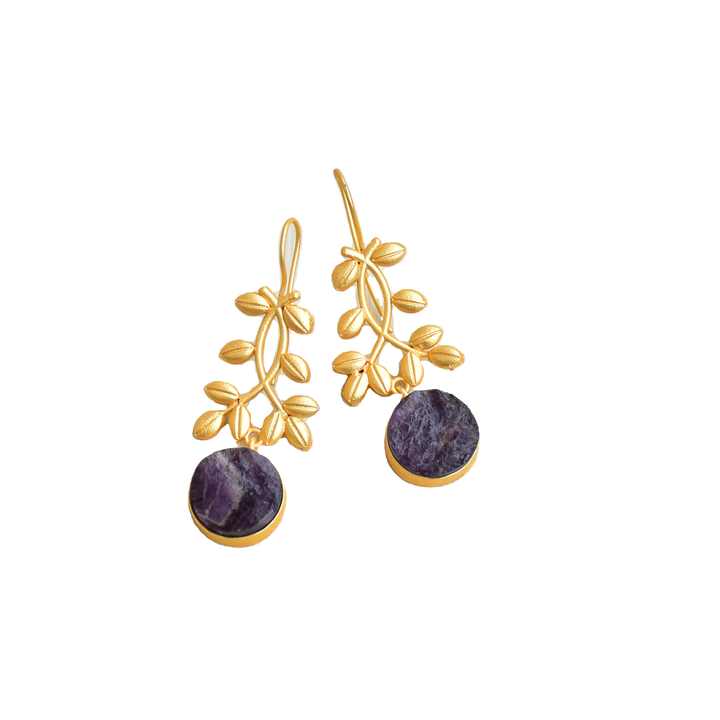 ต่างหูห้อยประดับอะเมทิสต์ธรรมชาติ ชุบทอง ป้องกันการหมอง ไม่มีนิกเกิล ป้องกันอาการแพ้ หินกึ่งมีค่า ขายส่ง