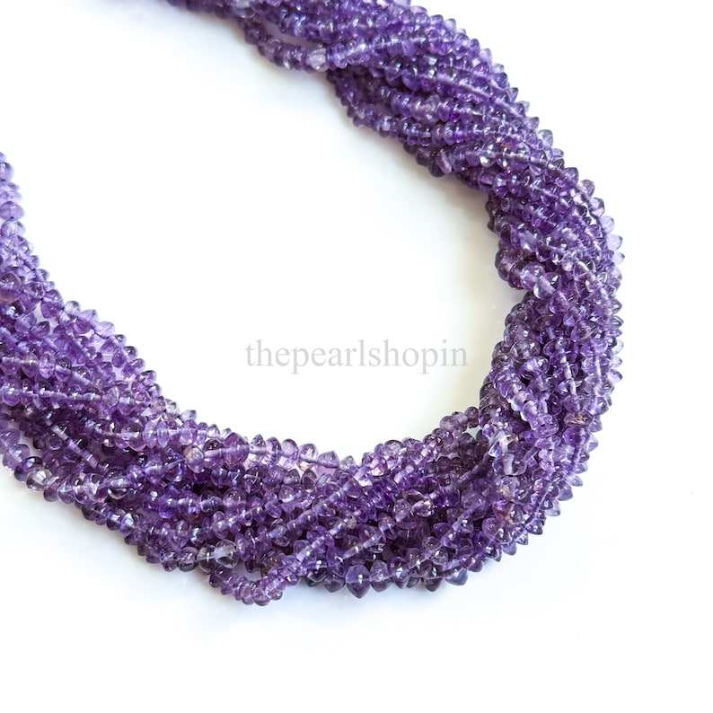 ลูกปัดพลอยอเมทิสต์ทรงกระดุมธรรมชาติขนาด 4 มม. สีม่วง ลูกปัดอเมทิสต์ทรงจานสำหรับทำเครื่องประดับ ลูกปัดอเมทิสต์แบบหลวมสำหรับเว้นช่อง
