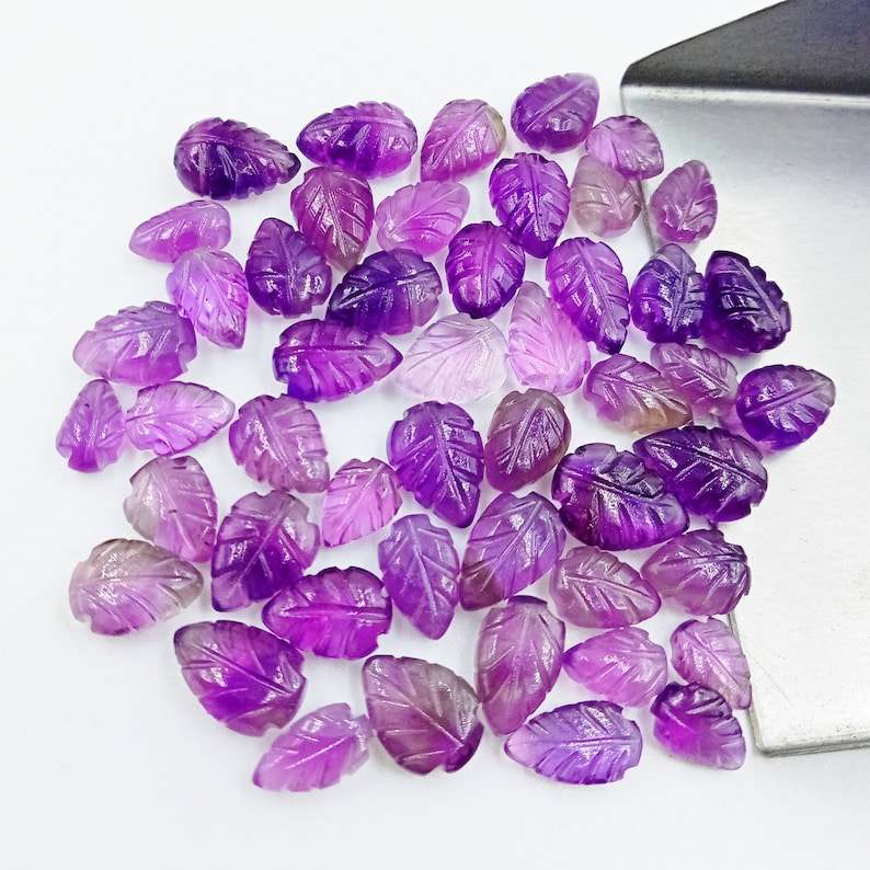 ลูกปัดอัญมณีแกะสลักรูปใบอเมทิสต์ธรรมชาติสำหรับทำเครื่องประดับแกะสลัก5x6-7x10mm ทำด้วยมือ
