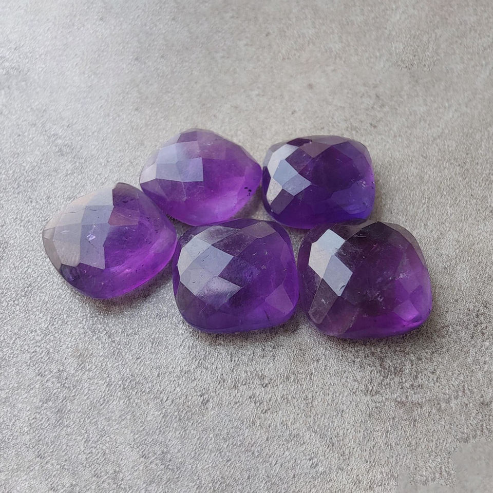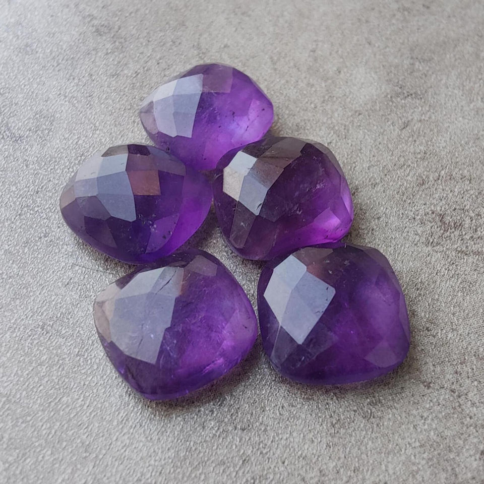 พลอยแอมเมทิสต์ธรรมชาติทรงเชคเกอร์คัท รูปทรงคุชชั่น แบบหลวม ด้านหลังแบน มีทุกขนาด