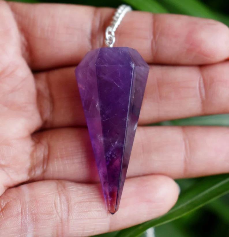 ลูกตุ้มคริสตัลอเมทิสต์ธรรมชาติพร้อมโซ่เงินการทำนายการทำนายการทำนายการรักษาด้วยพลอยแนะนำงานฝีมือนำโชคทางวิญญาณ