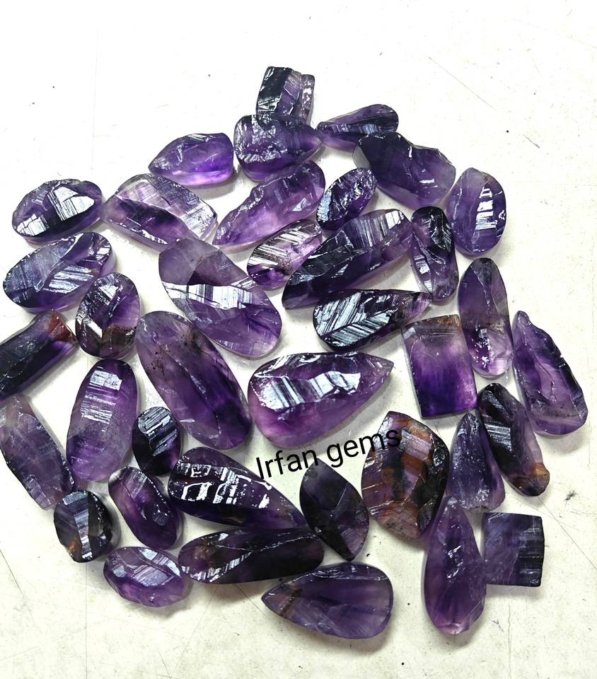 พลอยอะเมทิสต์ธรรมชาติอัญมณีทรงหลวมอัญมณีทรงหลังเบี้ยขนาดผสมขัดเงาคริสตัลสำหรับทำเครื่องประดับจี้อัญมณี