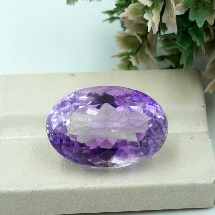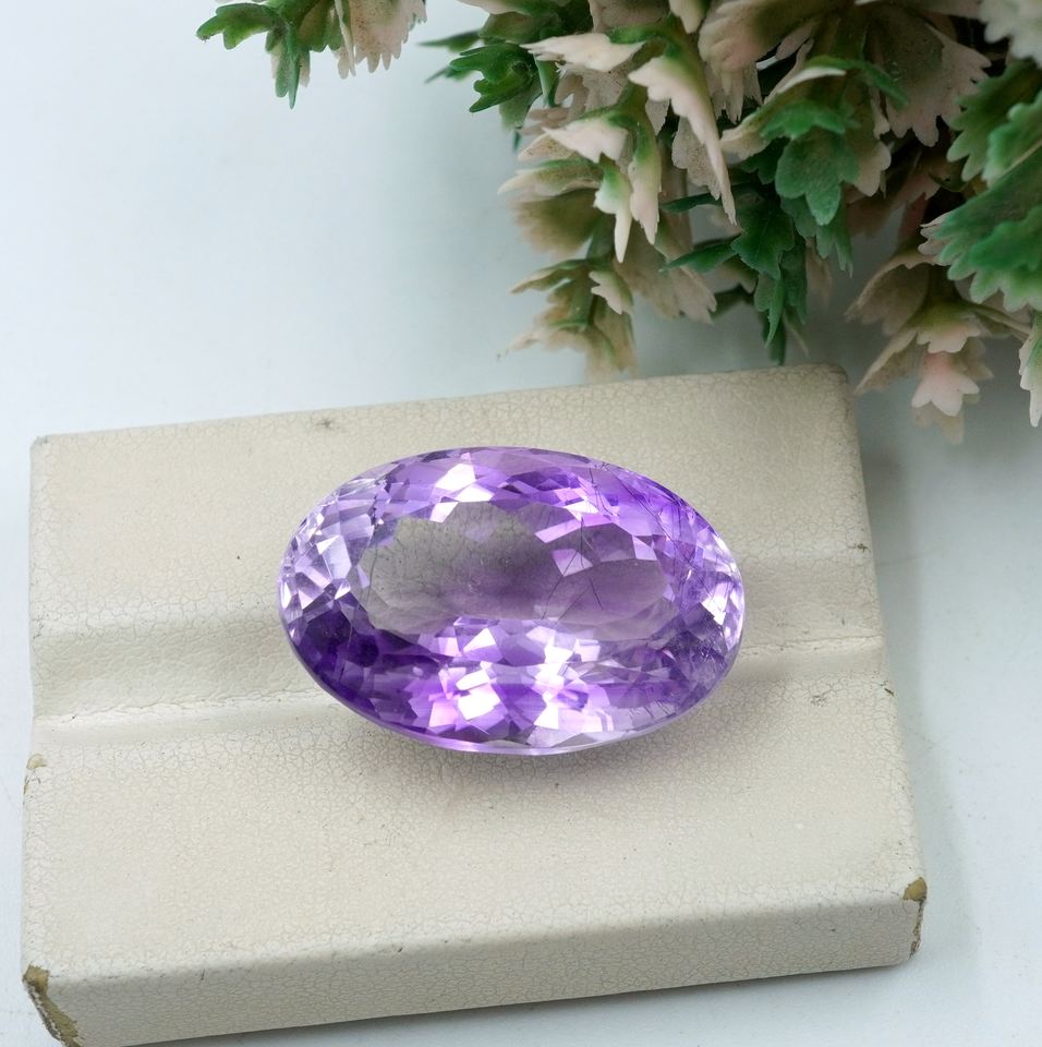 พลอยแอมเมทิสต์ธรรมชาติทรงรีเจียระไนเหลี่ยมเพชรพลอย น้ำหนัก 27 กะรัต แบบเม็ดเดี่ยว