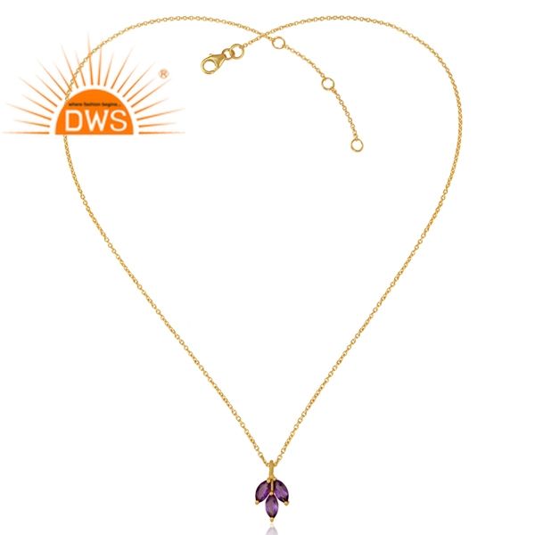 สร้อยคอพลอยอเมทิสต์ธรรมชาติ 925 เงินแท้ ชุบทอง รูปทรงใบไม้ สร้อยคอจี้ ผู้จำหน่ายเครื่องประดับ คอลเลคชั่นคลาสสิก