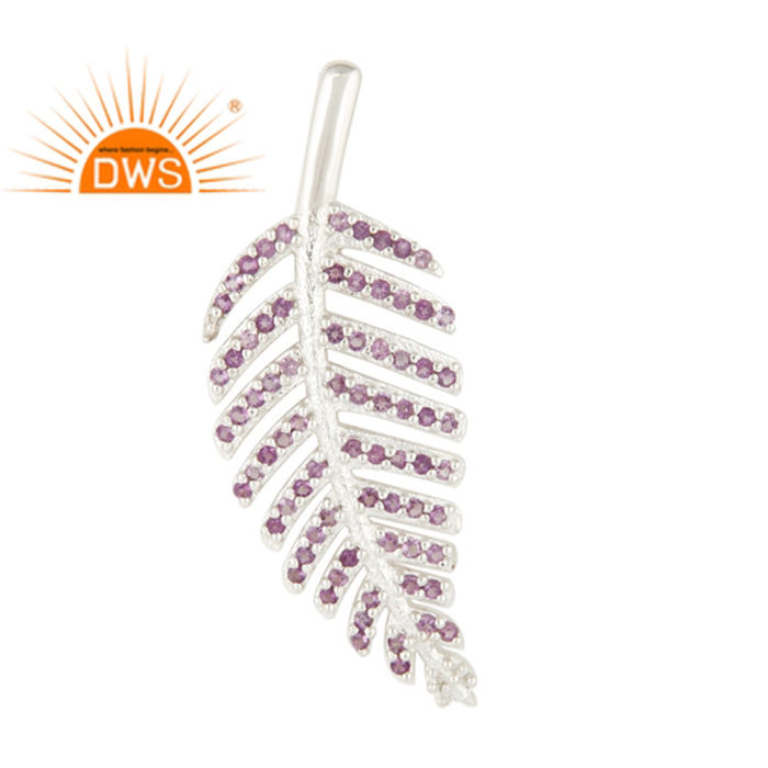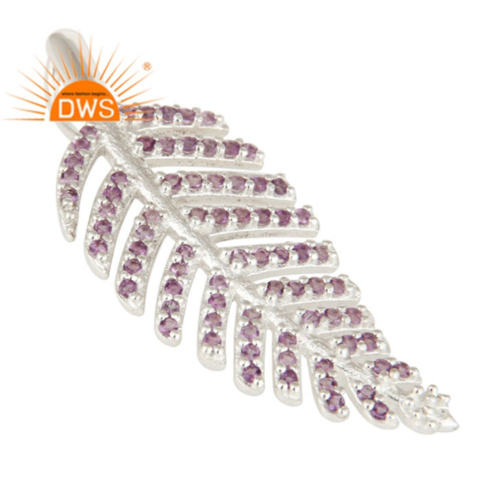 Natural Amethyst Gemstone Pendant Designer Fine Silver Jewelry Manufacturer Leaf Design Silver Pendant Jewelry Supplier
