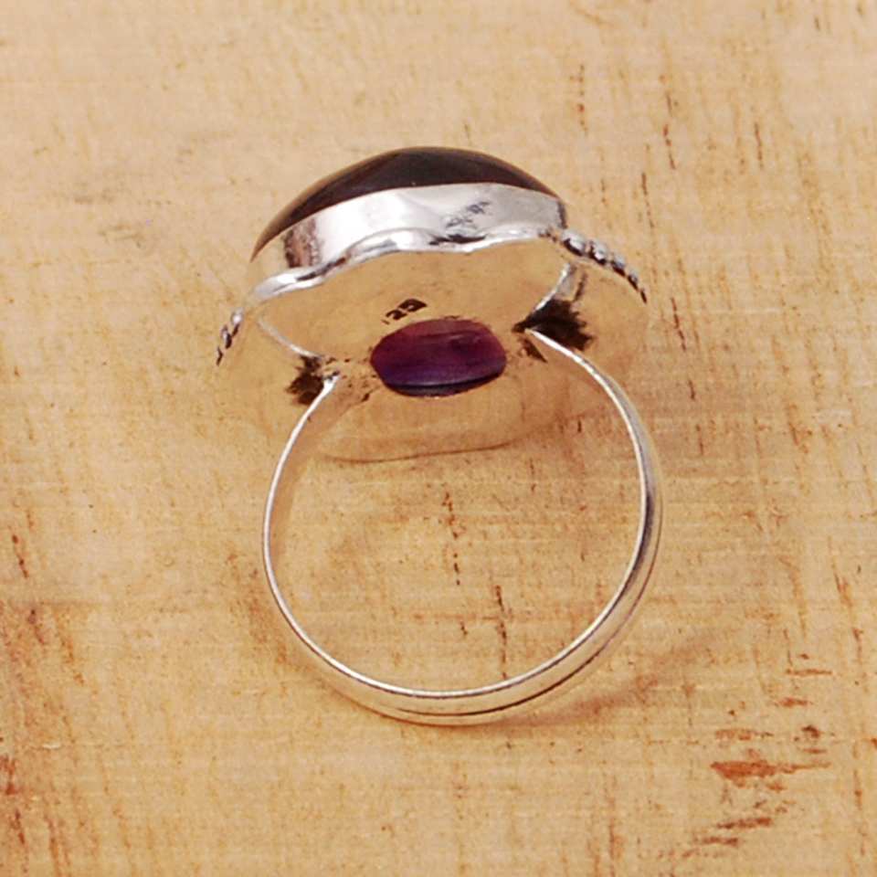 แหวนพลอยอเมทิสต์ธรรมชาติ925แหวนวินเทจเงินสเตอร์ลิงรูปไข่ของแท้สำหรับงานเลี้ยงวันเกิด