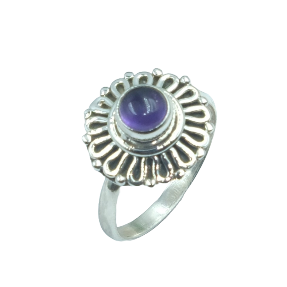 แหวนพลอยอเมทิสต์ลายดอกไม้ประดับหน้า