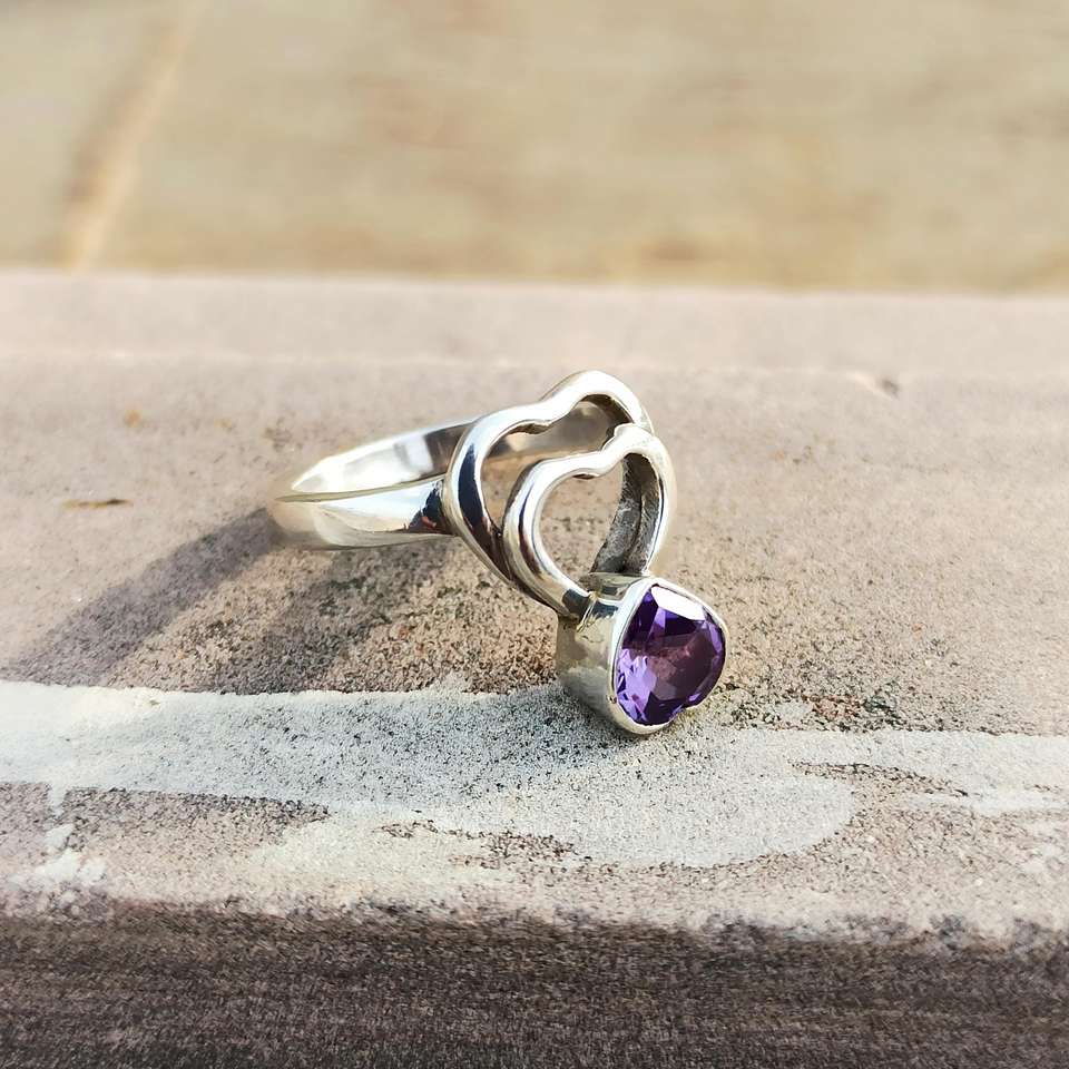 Wholesale Fine 925 Sterling Silver Natural Amethyst Heart Bohemian Ring Bezel Setting Engagement Earpiece Cheap Factory Price