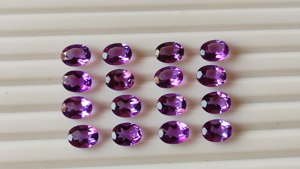 อัญมณีควอทซ์เจียระไนแบบอเมทิสต์ธรรมชาติหลายขนาดปานกลางทรงรีทรงกลมตัดขนาด7x5มม. จากบราซิลสำหรับเครื่องประดับ