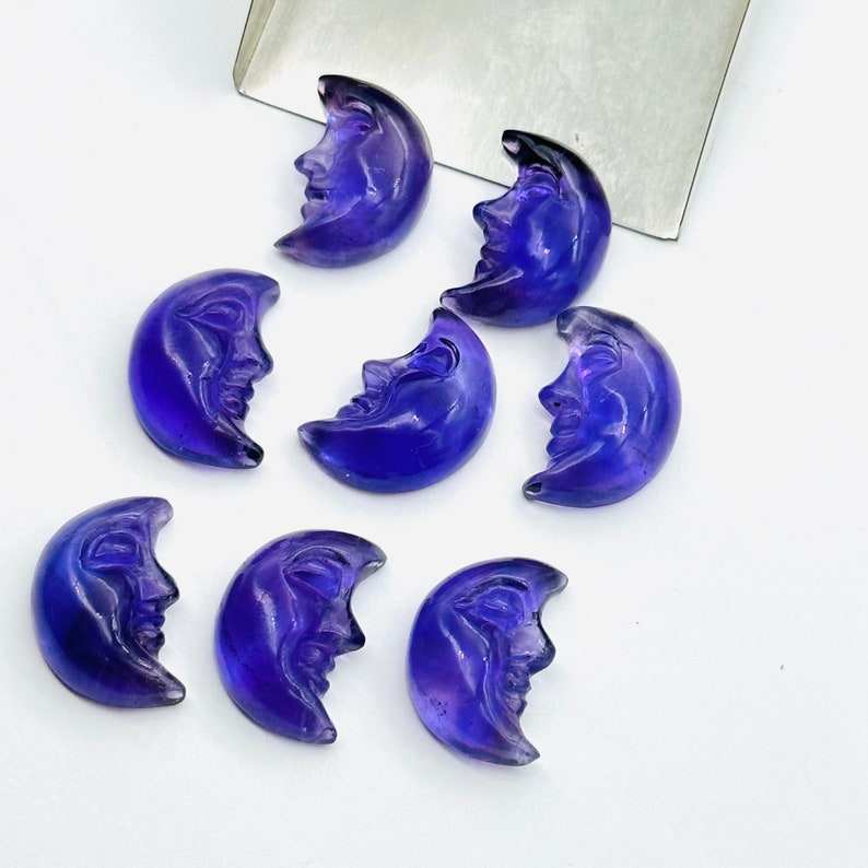 พลอยอะมีทิสต์ธรรมชาติรูปพระจันทร์ครึ่งเสี้ยวแกะสลักด้วยมือ ขนาด 16x10 มม.