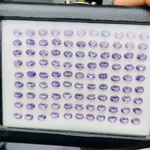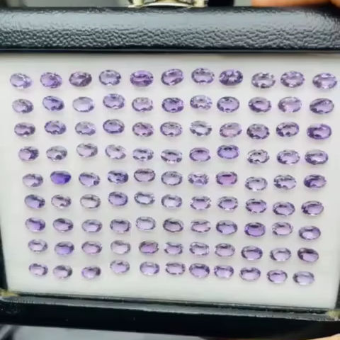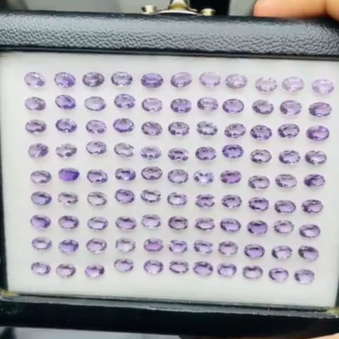 พลอยแอมะทิสต์ทรงรีธรรมชาติ คุณภาพ AAA ความเงางามพิเศษ ความใสสูง ขนาด 6x4 มม. น้ำหนัก 67.05 กะรัต รับรองคุณภาพ ราคาถูก