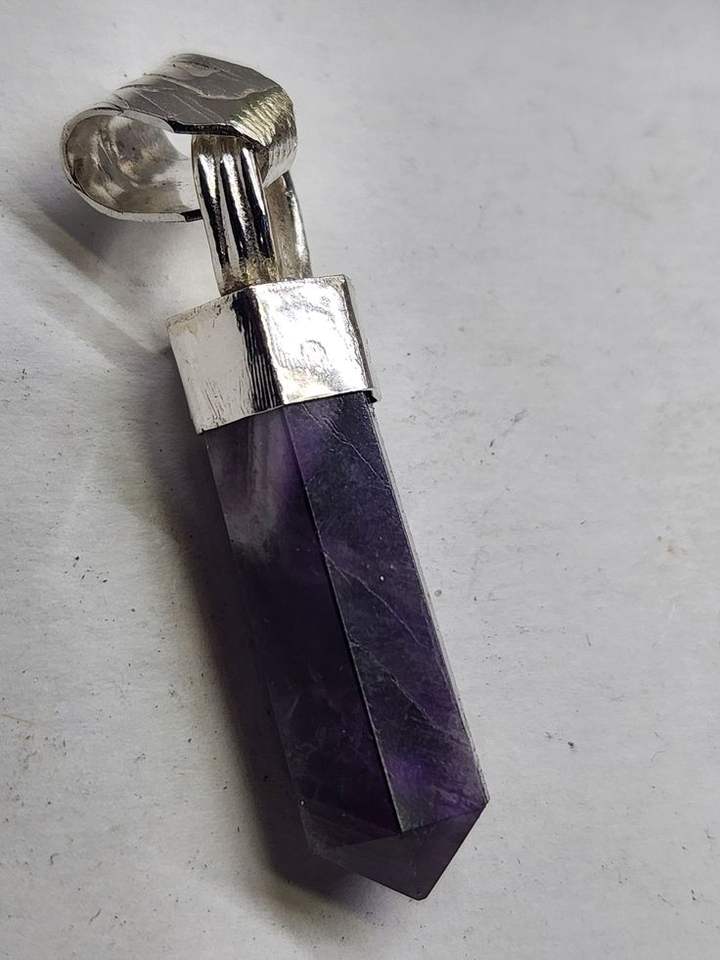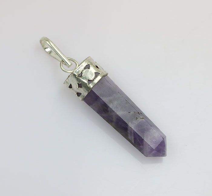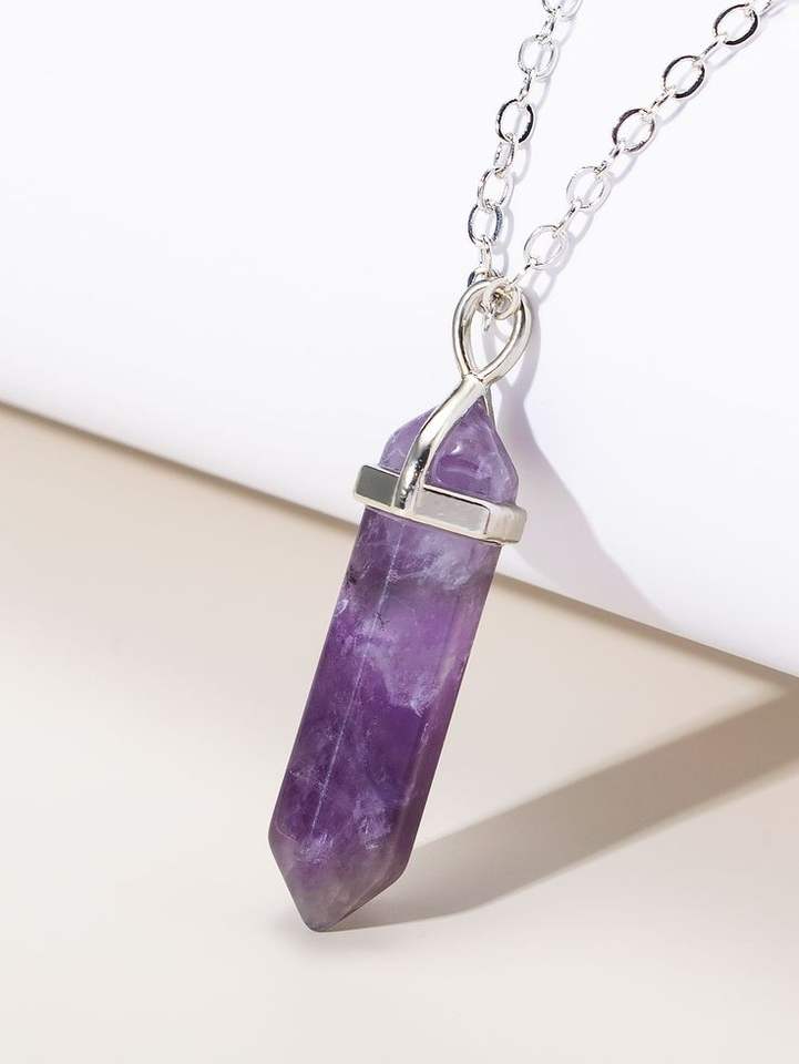 สร้อยคอจี้รูปจุดทรงดินสออเมทิสต์ธรรมชาติจี้หินอัญมณีคริสตัลทำด้วยมือเครื่องประดับหินที่ซื้อจากอาเกต