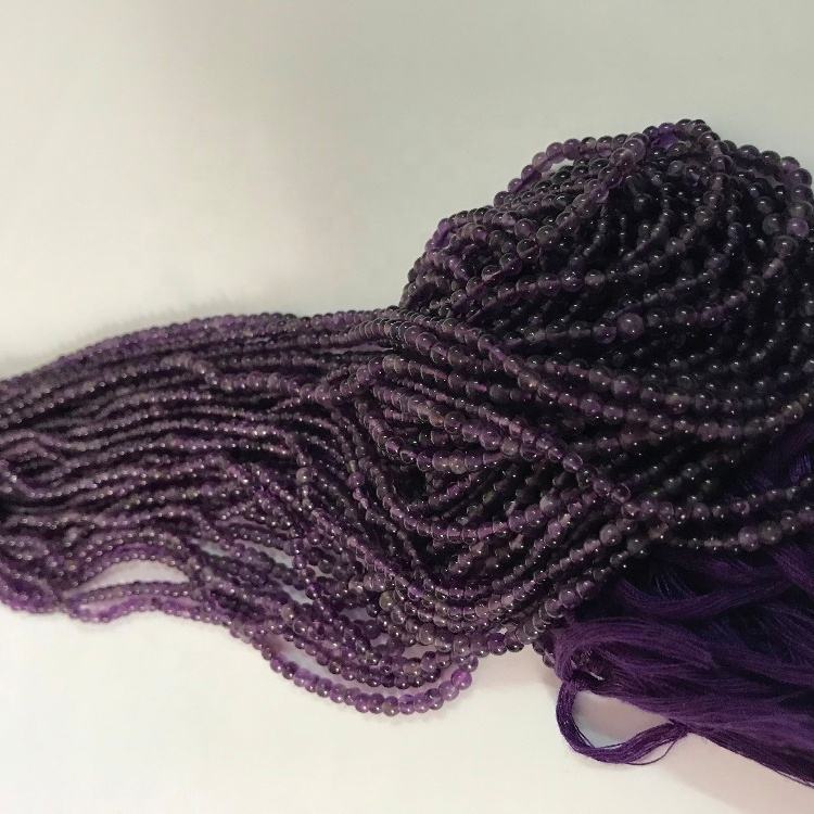 พลอยอเมทิสต์ธรรมชาติล้วนกลมเรียบหินกึ่งมีค่าลูกปัด