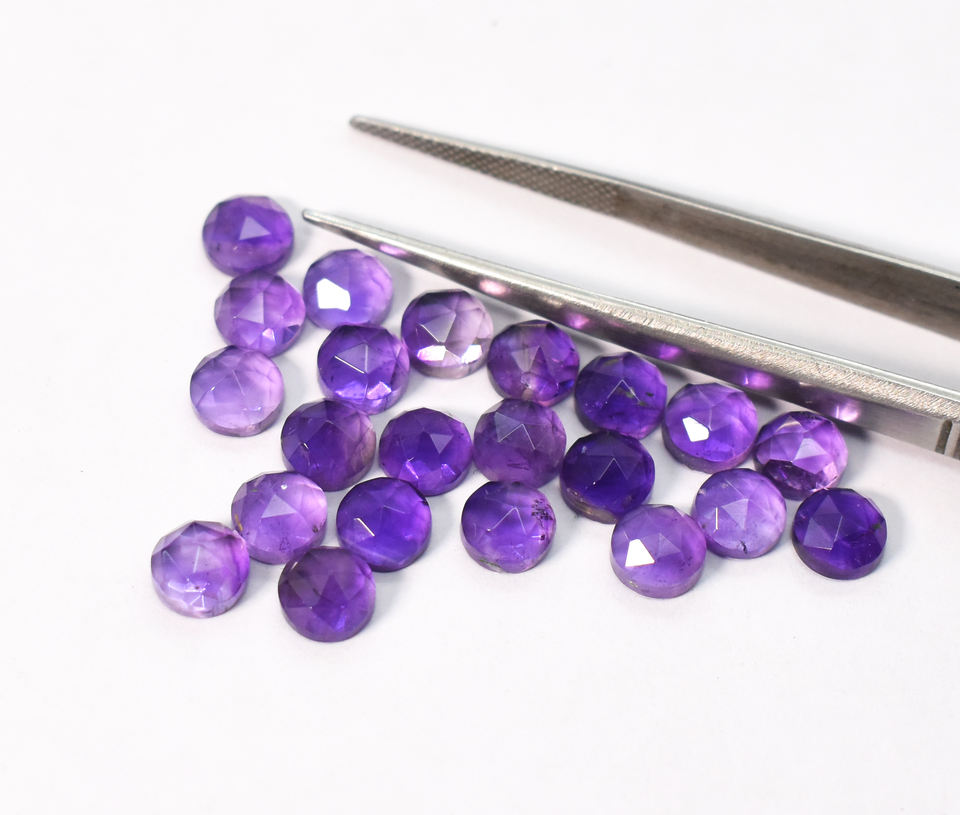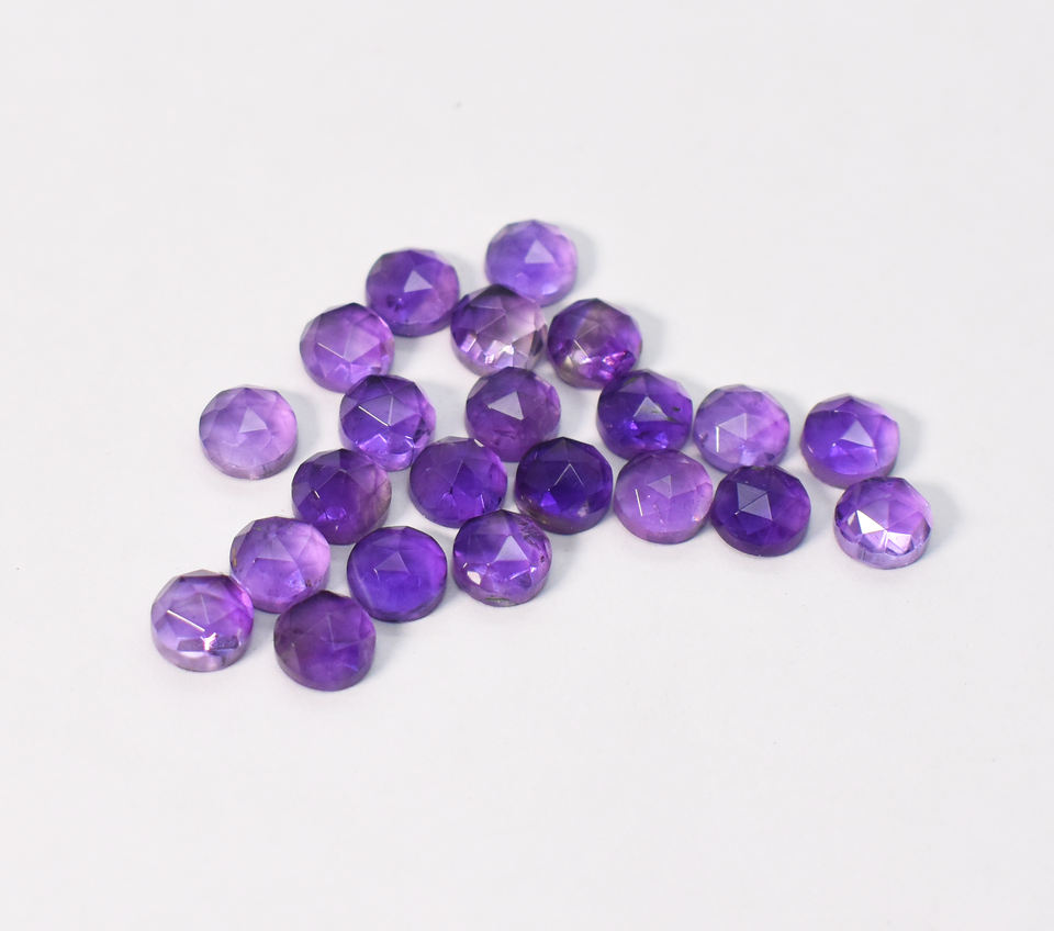 พลอยอะมีทิสต์ธรรมชาติทรงกลมเจียระไนแบบโรสคัท น้ำหนัก 21.50 กะรัต ขนาด 6 มม. จำนวน 22 ชิ้น