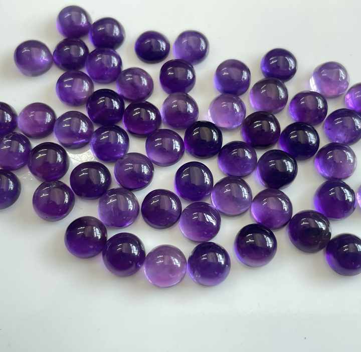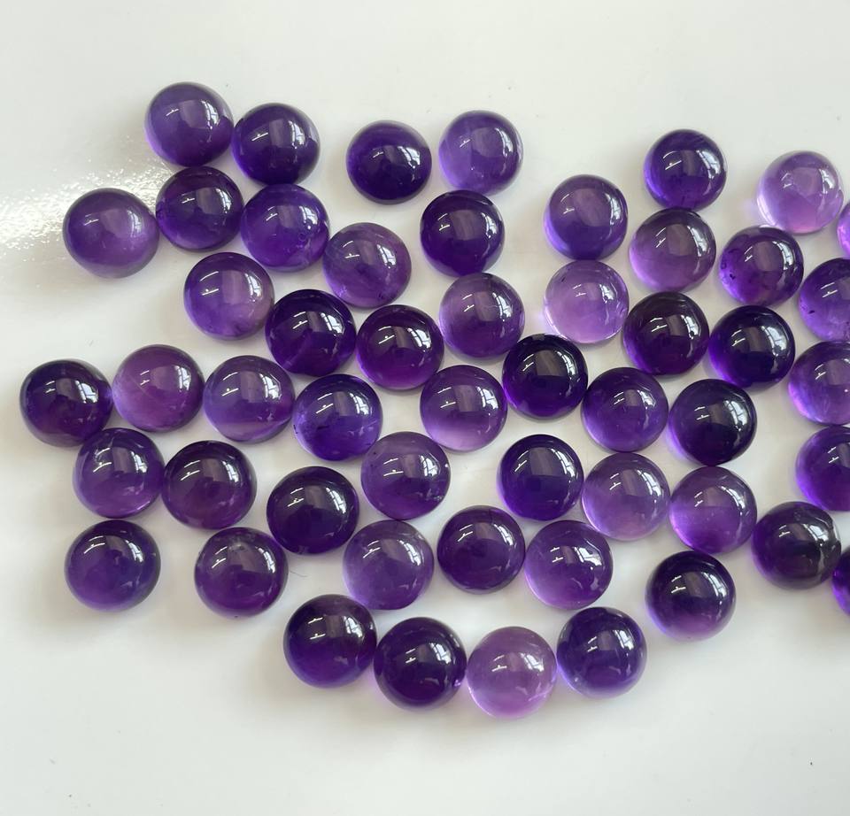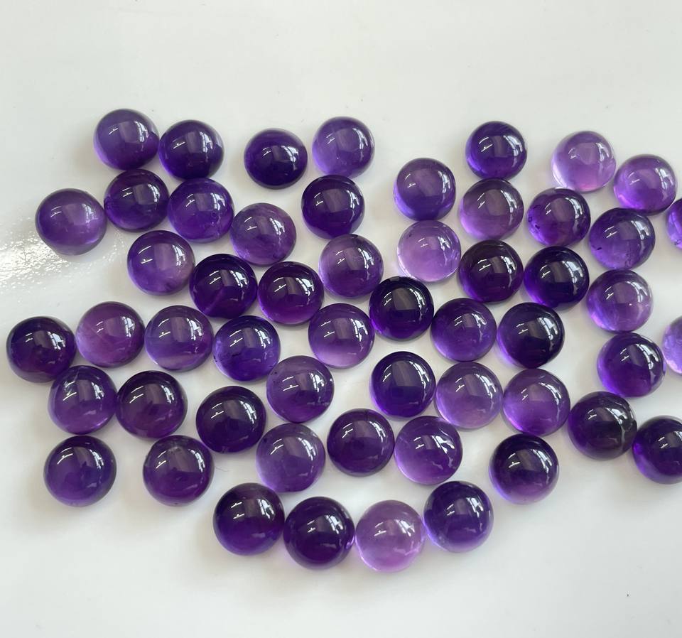 พลอยอเมทิสต์ธรรมชาติทรงกลม10มม. หลังแบน-พลอยอเมทิสต์ทรงหลวม