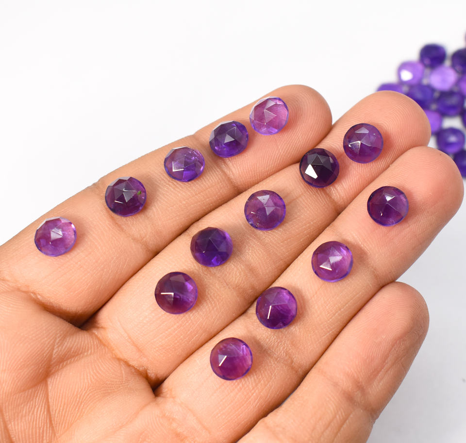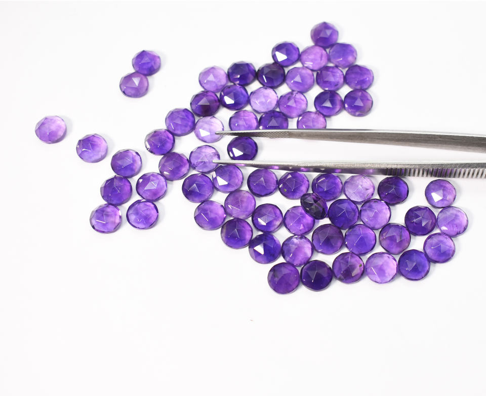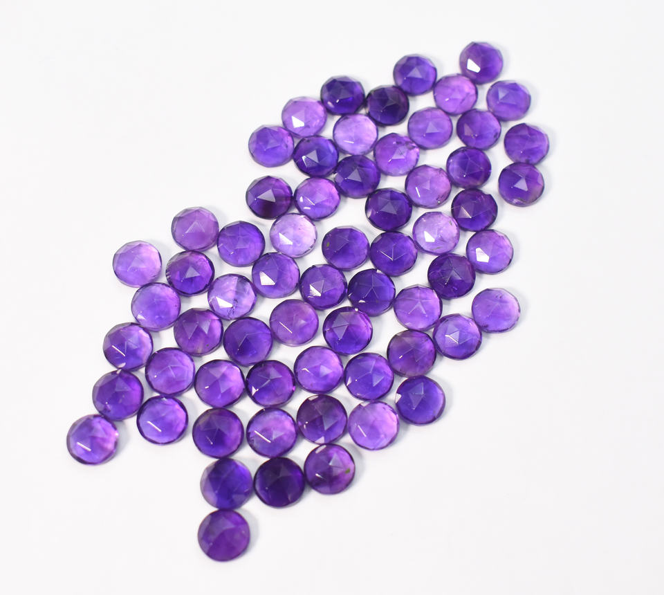 พลอยแอมะทิสต์ธรรมชาติทรงกลมเจียระไนแบบโรสคัท 115.85 กะรัต 65 ชิ้น ขนาด 8 มม. ขายเป็นล็อต