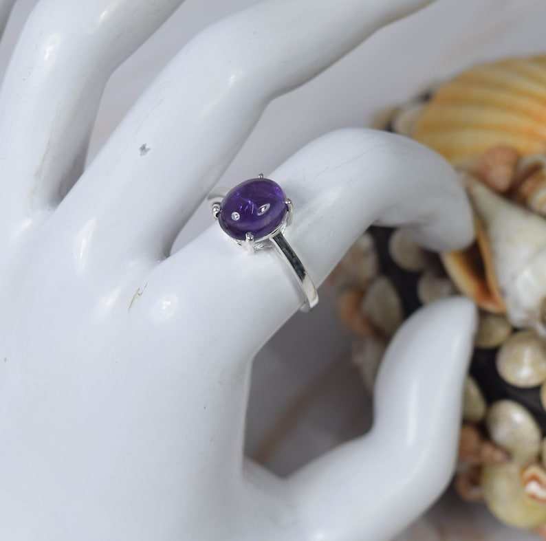 แหวนพลอยอัญมณีแกะสลักรูปวงรีทรงรีจากอเมทิสต์ธรรมชาติ925แหวนแฟชั่นสำหรับปาร์ตี้ทำจากเงินสเตอร์ลิงสำหรับผู้หญิง
