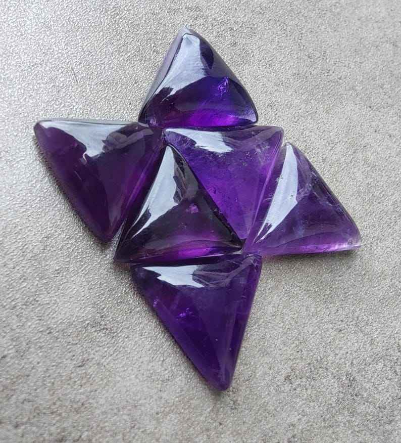 อเมทิสต์ธรรมชาติทรงสามเหลี่ยมแบบคาโบชอง คุณภาพมาตรฐานสำหรับเครื่องประดับ พลอยหลวม