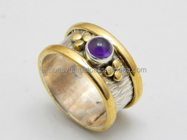 แหวนพลอยสีม่วงธรรมชาติแบบทูโทนสีเงินสเตอลิง925โบฮีเมียนเครื่องประดับงานแฮนด์เมดชั้นดีสำหรับงานแต่งงาน