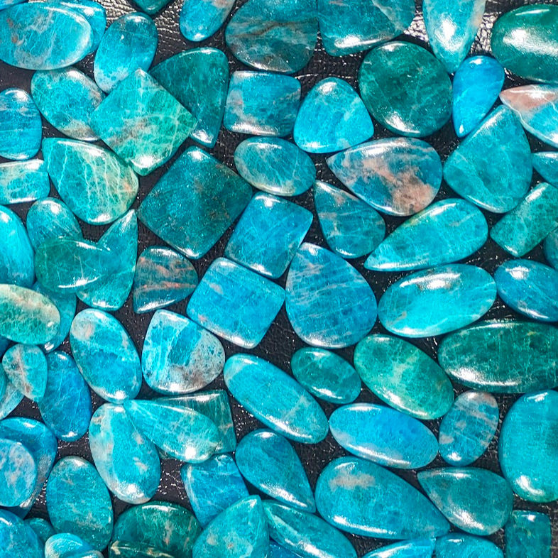 อะพาไทต์สีน้ำเงินนีออนธรรมชาติทรงเหลี่ยมแบบคาโบชอง คุณภาพสูง สำหรับตกแต่งฟันแบบกริลล์ซ