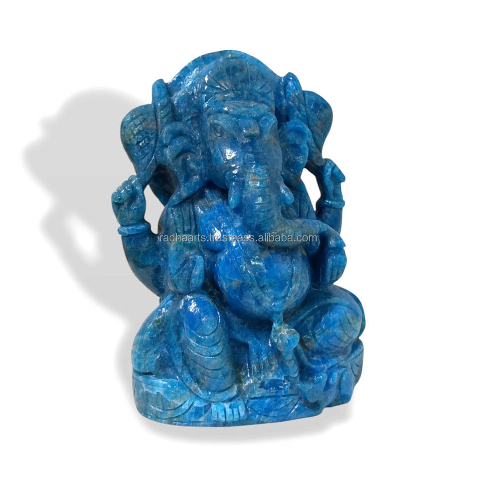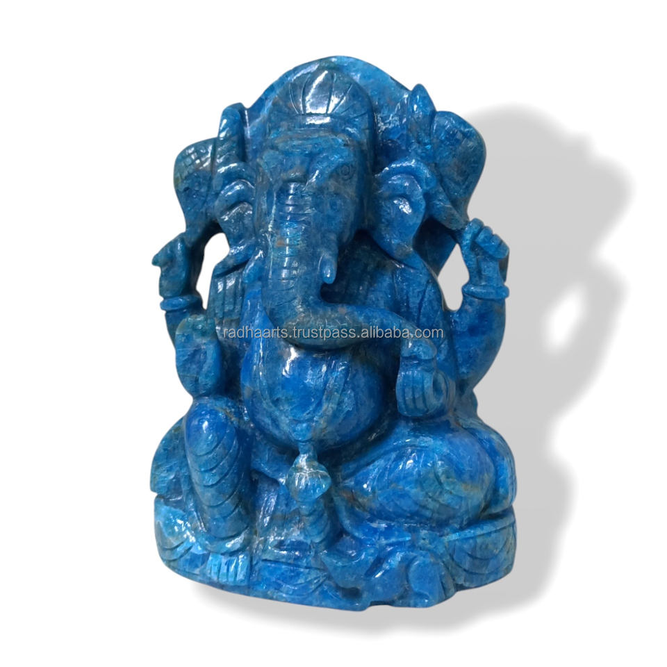 คริสตัลอะพาไทต์สีน้ำเงินธรรมชาติ รูปปั้นพระกฤษณะหัวเราะ หินบำบัดแกะสลัก ของตกแต่ง รีกิ รูปปั้นอัญมณี