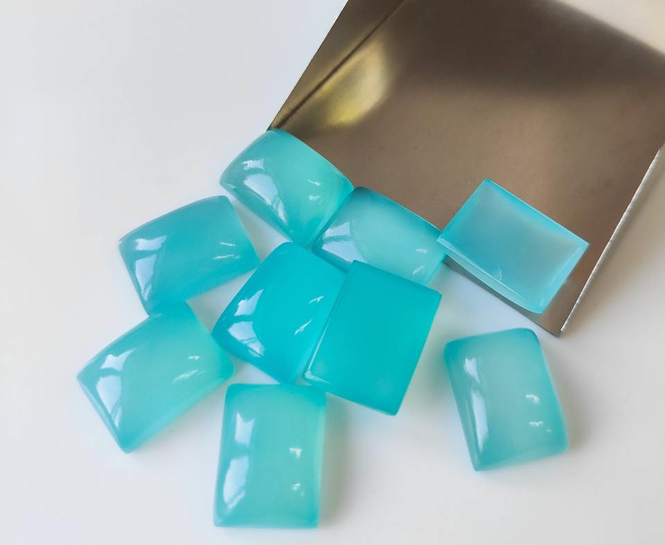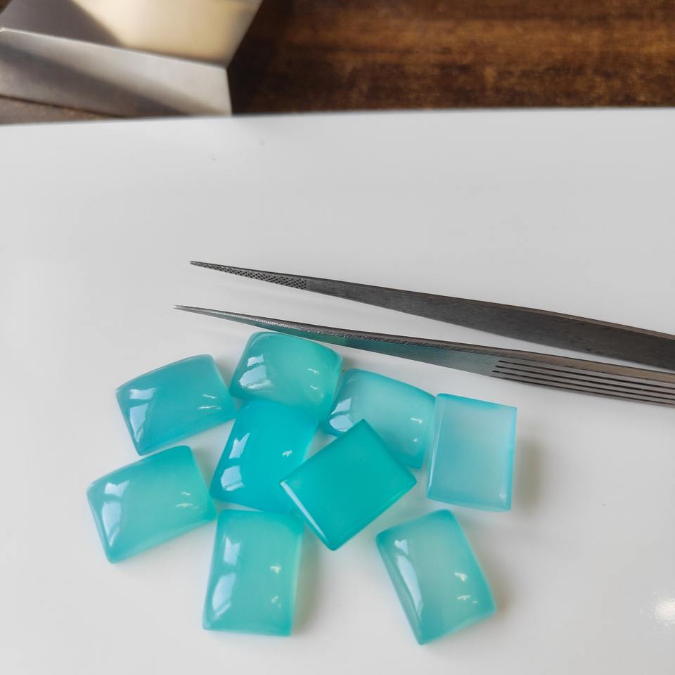 พลอยแคลเซโดนีธรรมชาติทรงสี่เหลี่ยมผืนผ้าขนาด 3x5 มม.-20x30 มม. แบบหลังแบน สำหรับทำเครื่องประดับ ขายส่ง