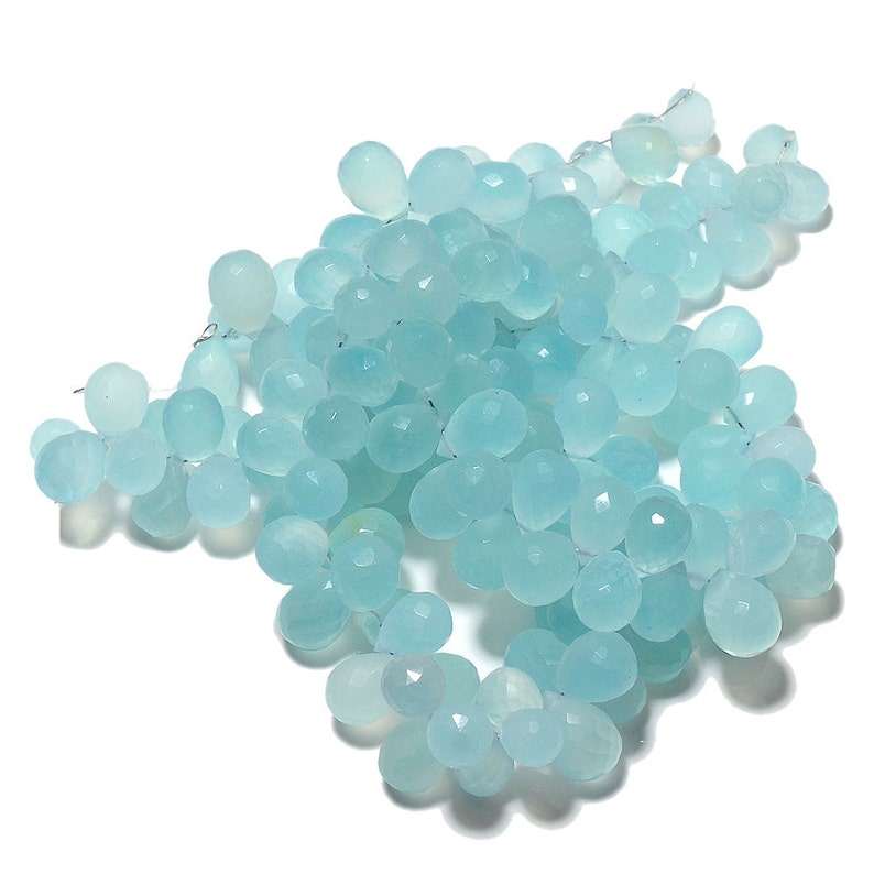 ลูกปัดหินแคลเซโดนีสีน้ำธรรมชาติทรงหยดน้ำเจียระไนสำหรับทำเครื่องประดับแบบเส้น