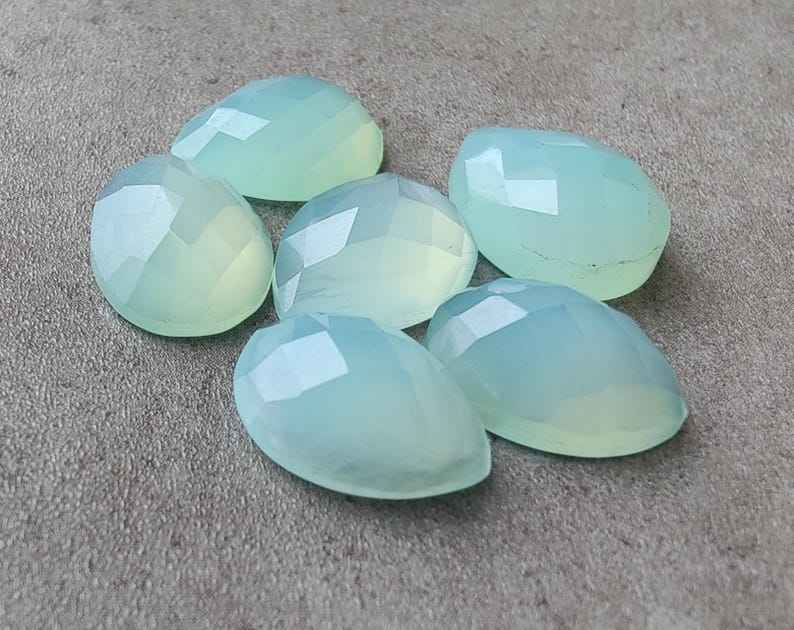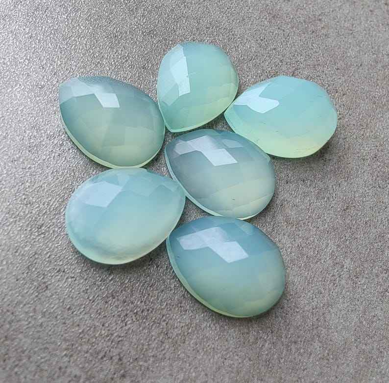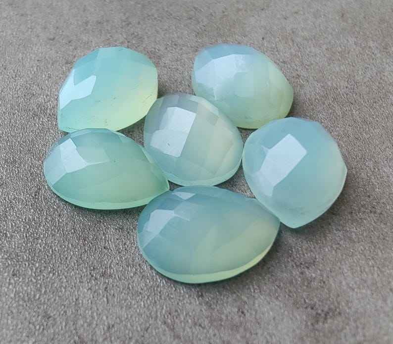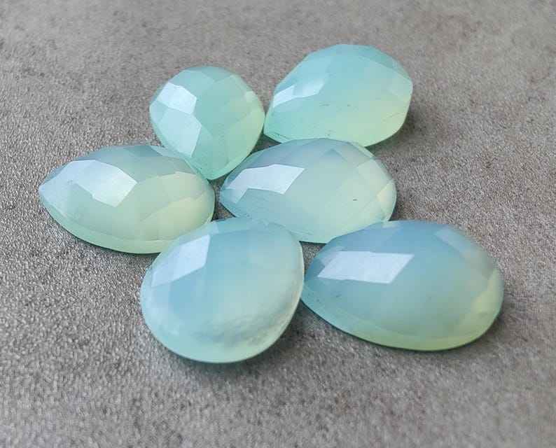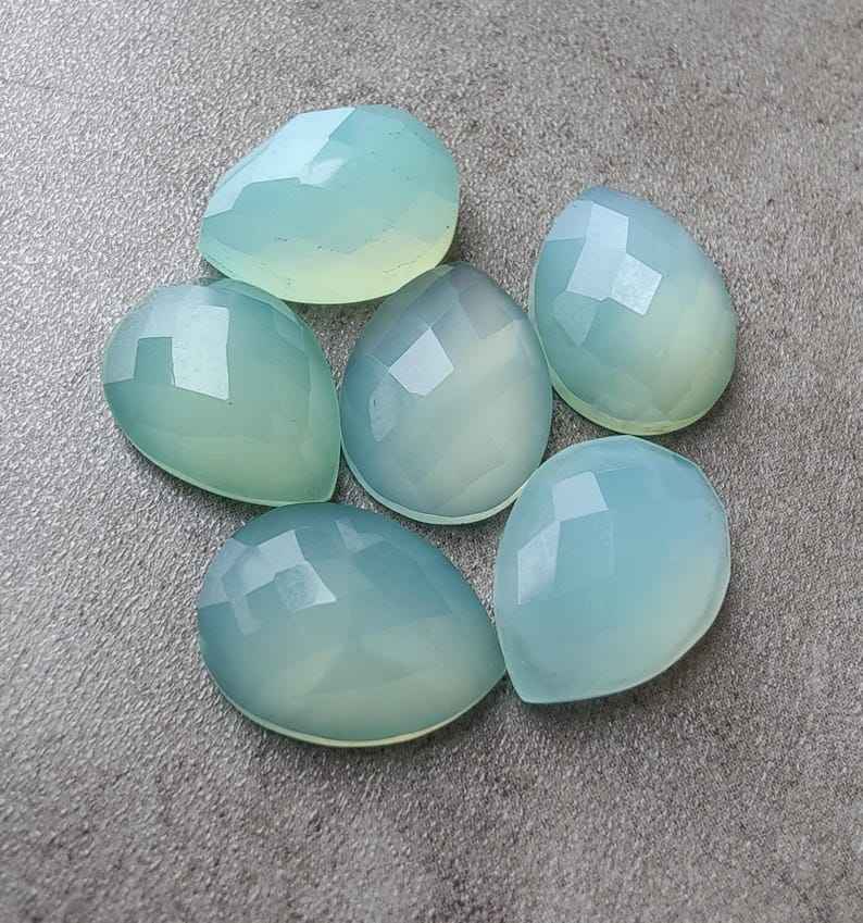 พลอยแคลเซโดนีธรรมชาติทรงลูกแพร์แบบคาโบชอง ตัดแบบเช็คเกอร์ ขนาดมาตรฐาน สำหรับทำเครื่องประดับ