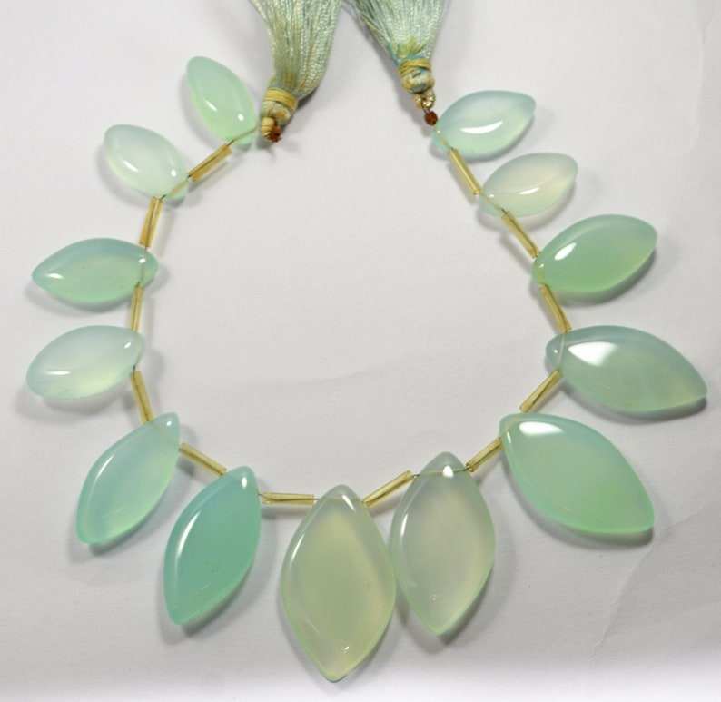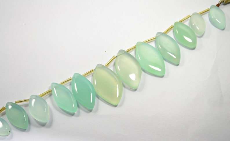 ลูกปัดหินแคลเซโดนีสีน้ำทะเลธรรมชาติทรงมาร์คีส์ขัดเรียบ สำหรับทำเครื่องประดับ ขายส่ง