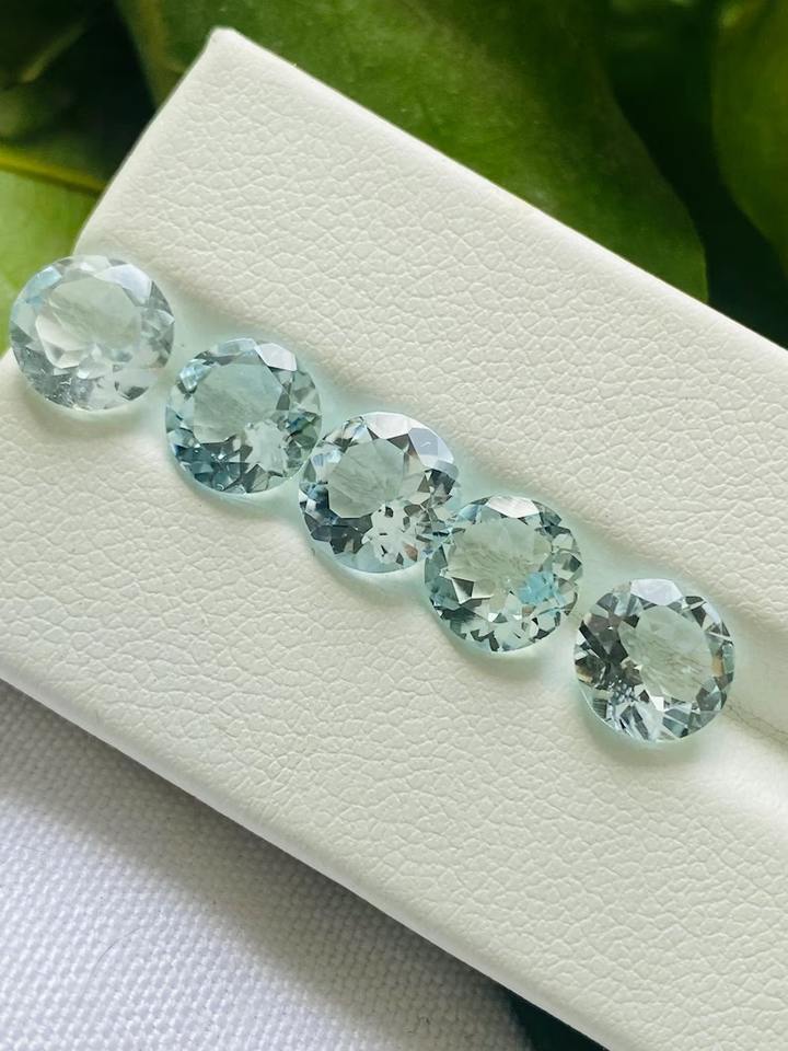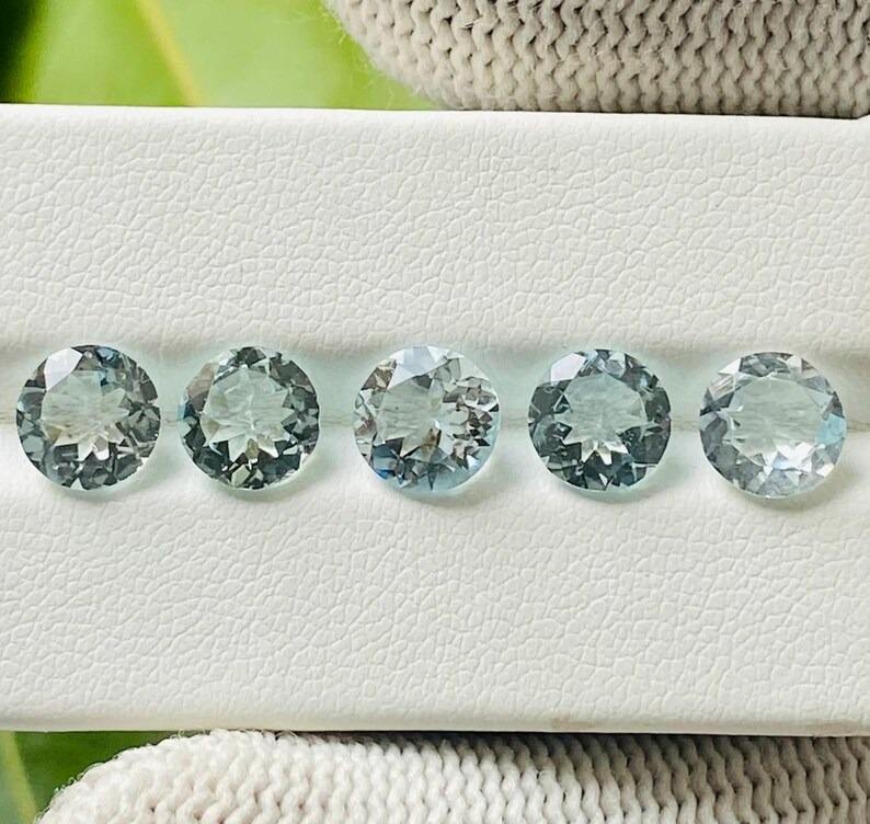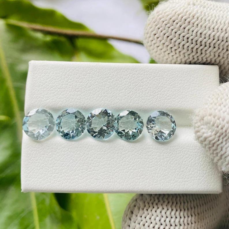 ชุดอัญมณีอะความารีนธรรมชาติทรงกลมขนาด 6 มม. | พลอยอะความารีนแบบเม็ดสำหรับทำเครื่องประดับ | คริสตัลหินประจำเดือนมีนาคมเปล่งประกาย