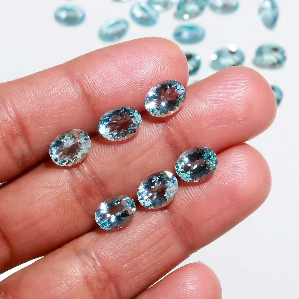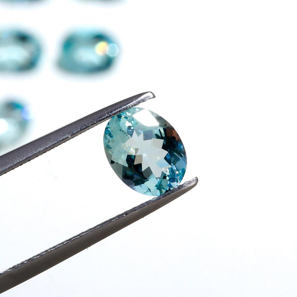 พลอยสีฟ้าทรงวงรีเหลี่ยมเพชรพลอยสีฟ้าเข้มขนาด9x7มม.