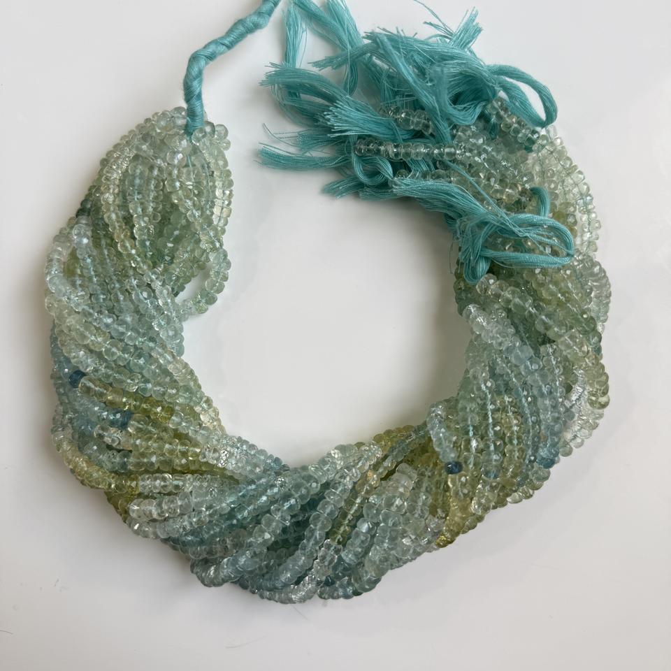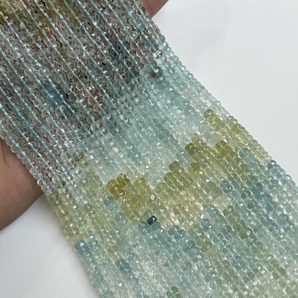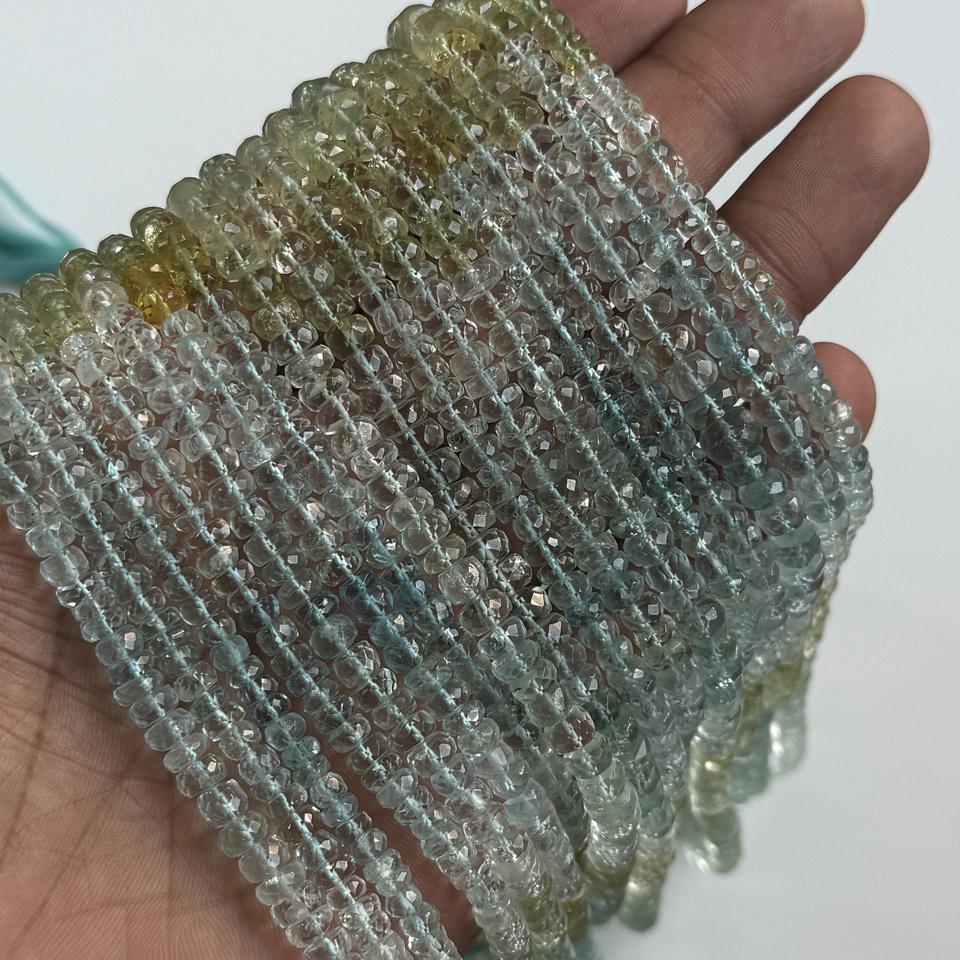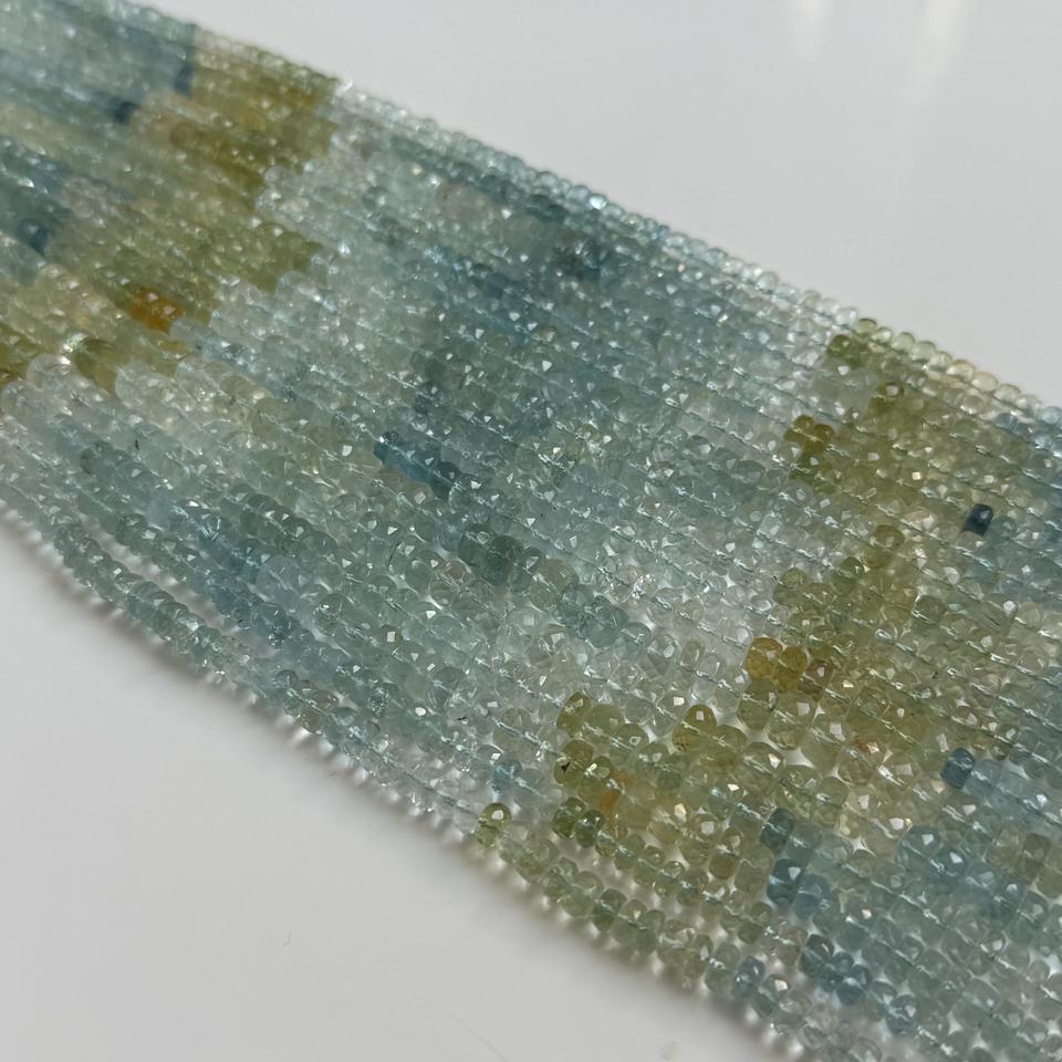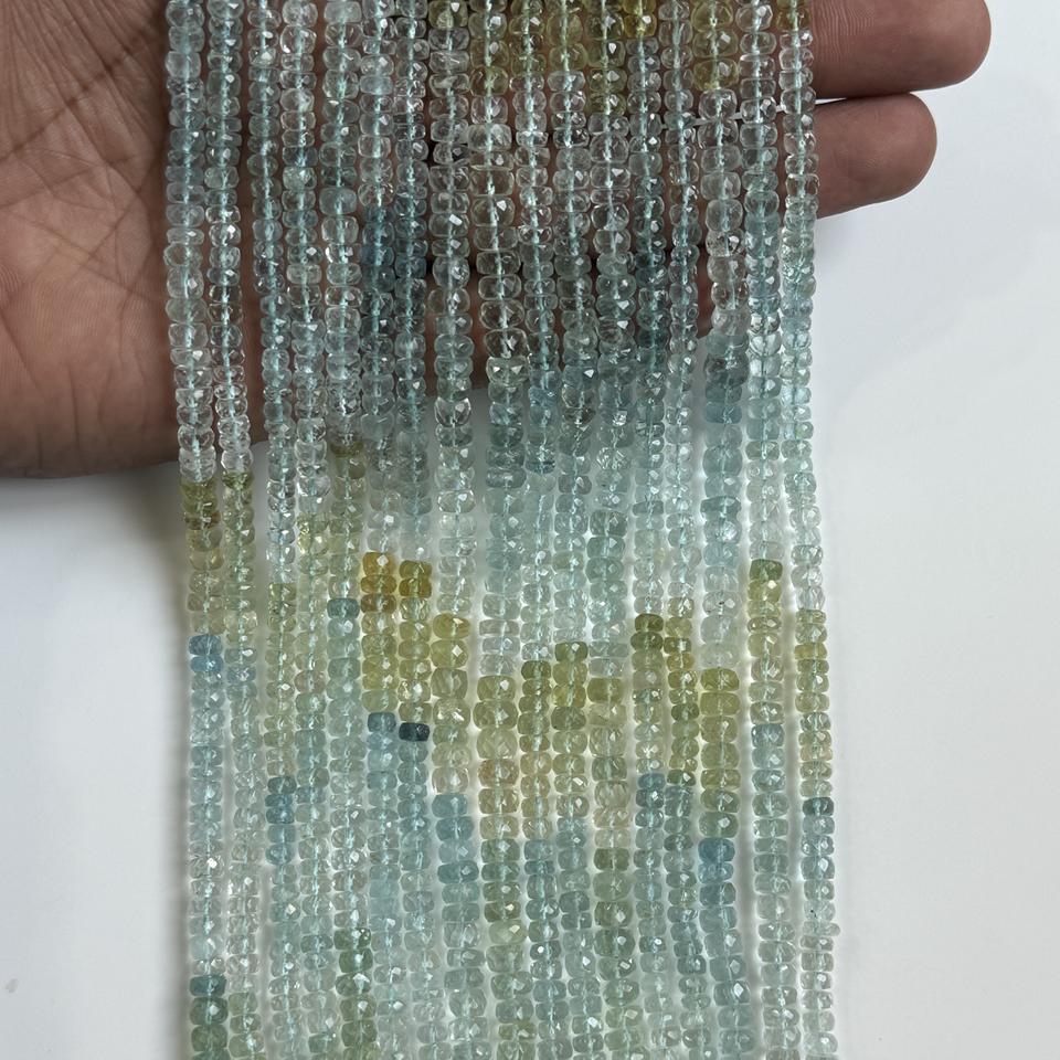 ลูกปัดอะความารีนทรงรอนเดลเหลี่ยมเพชรพลอยธรรมชาติ ขนาด 5-6 มม. สีฟ้าอมเขียว ร้อยเป็นเส้น สำหรับทำเครื่องประดับ