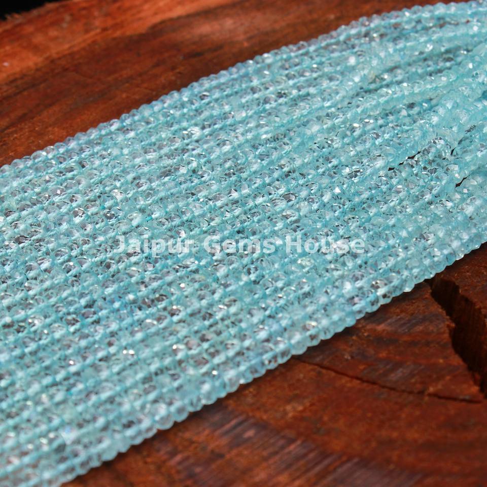 ลูกปัดทรงสี่เหลี่ยมเพชรพลอยอะความารีนธรรมชาติ4มม. ลูกปัดพลอยสีฟ้าพลอยอะความารีนลูกปัดขายส่งสำหรับสร้อยคอและเครื่องประดับ