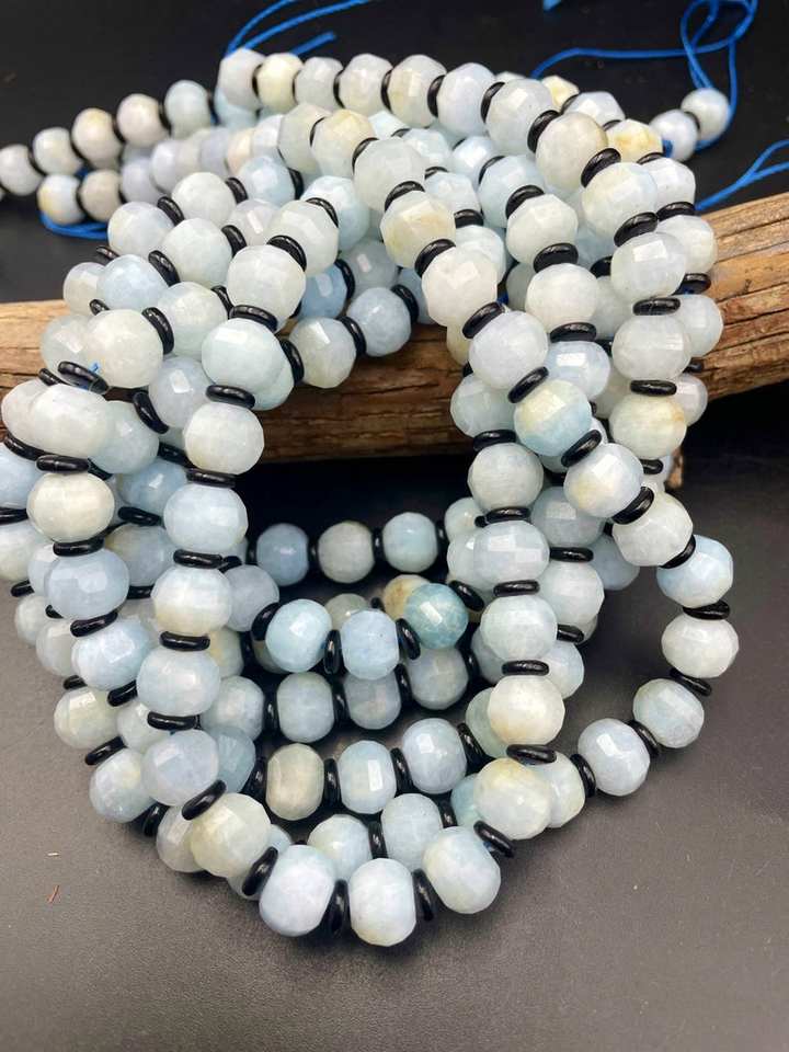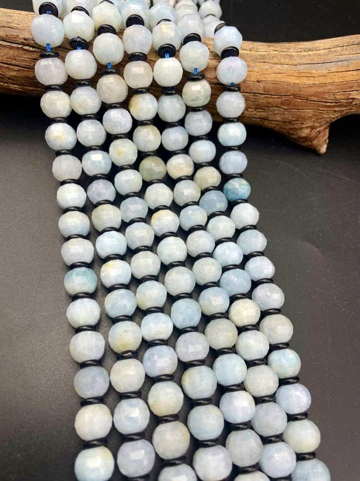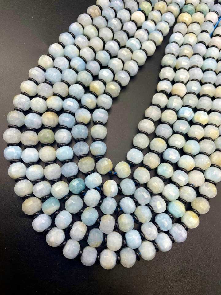 ลูกปัดพลอยอะความารีนธรรมชาติทรงเหลี่ยม คริสตัลสีฟ้าสวยงาม คุณภาพดี สำหรับทำเครื่องประดับเป็นเส้น