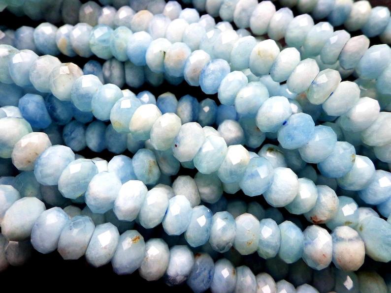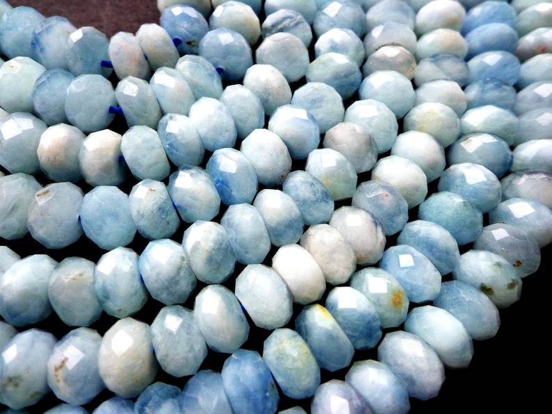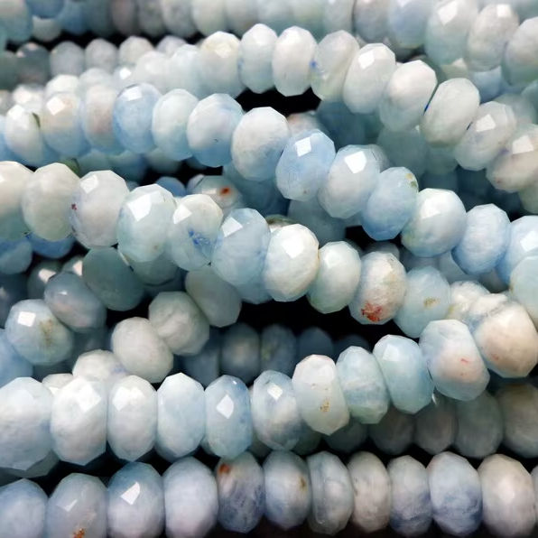 ลูกปัดพลอยอะความารีนธรรมชาติทรงรอนเดลเหลี่ยมเพชรพลอย สีฟ้าสวยงาม คุณภาพสูง ร้อยเป็นเส้นเต็ม