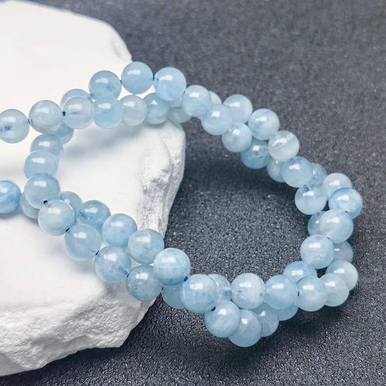 ลูกปัดพลอยอะความารีนธรรมชาติ ลูกปัดคริสตัลทรงกลมสำหรับทำเครื่องประดับ ขนาด 5 มม. ความยาว 15 นิ้ว
