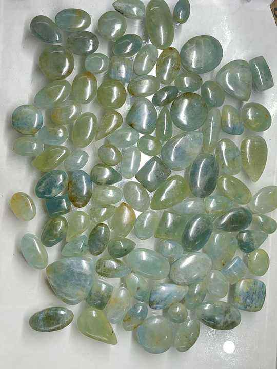พลอยอะความารีนธรรมชาติอัญมณีทรงหลังเบี้ยวัสดุโอปอลหินกึ่งมีค่าสำหรับสร้อยคอแบบทำมืองานหัตถกรรมใช้แสง