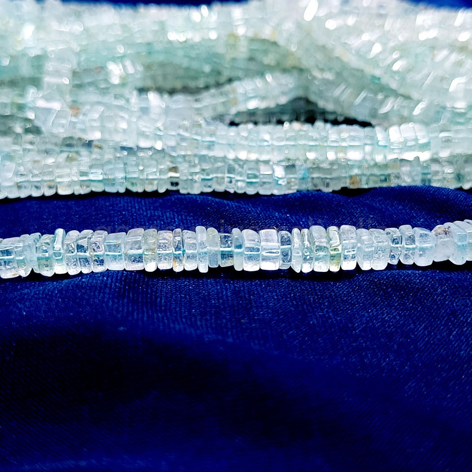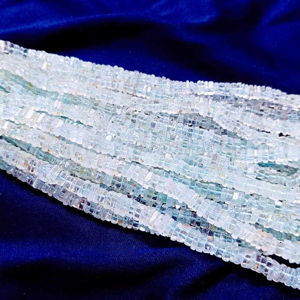 พลอยอะความารีนธรรมชาติทรงกลมเรียบสี Heishi ลูกปัดหลวม4.5-6มม. สำหรับทำเครื่องประดับ