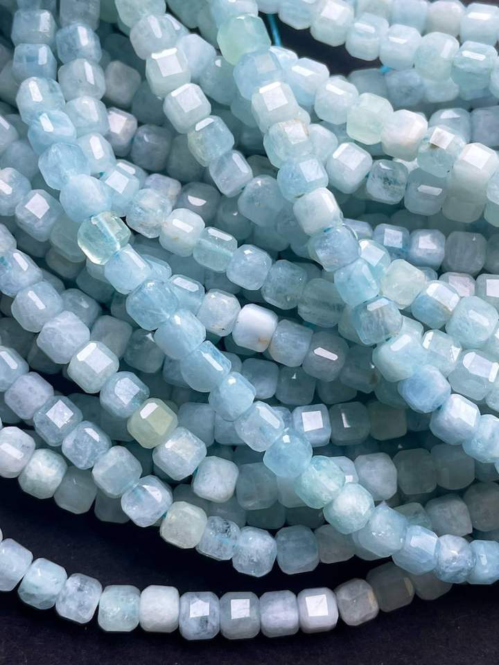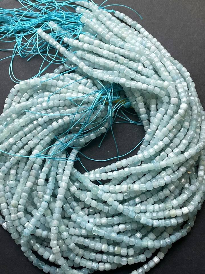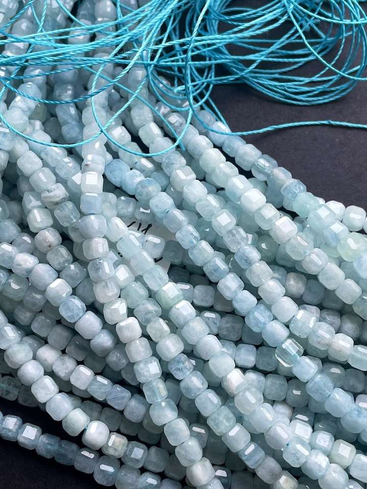 ลูกปัดหินอะความารีนธรรมชาติทรงสี่เหลี่ยม สีฟ้าทะเลสวยงาม ร้อยเป็นเส้นเต็ม สำหรับทำเครื่องประดับ