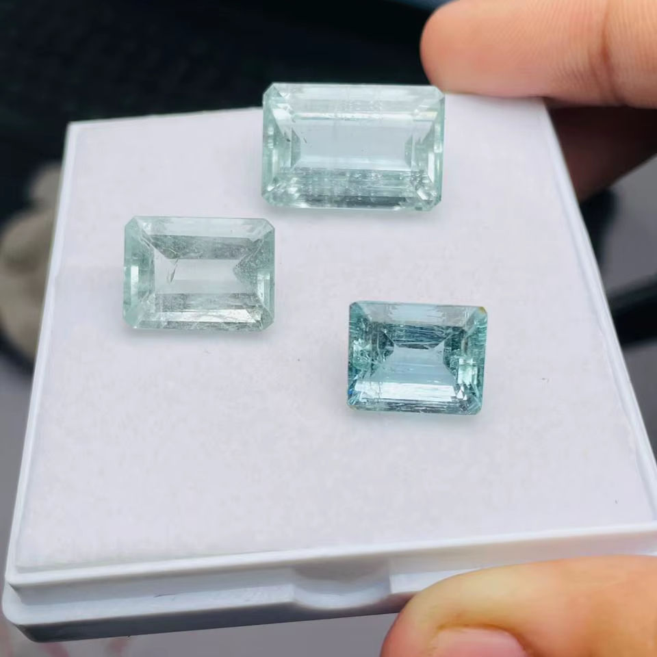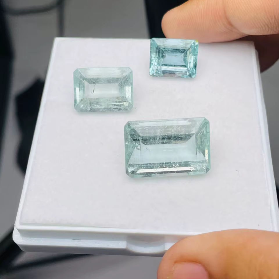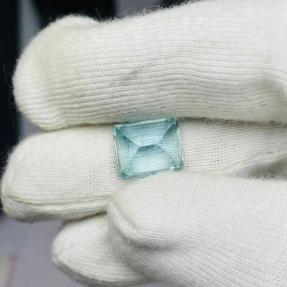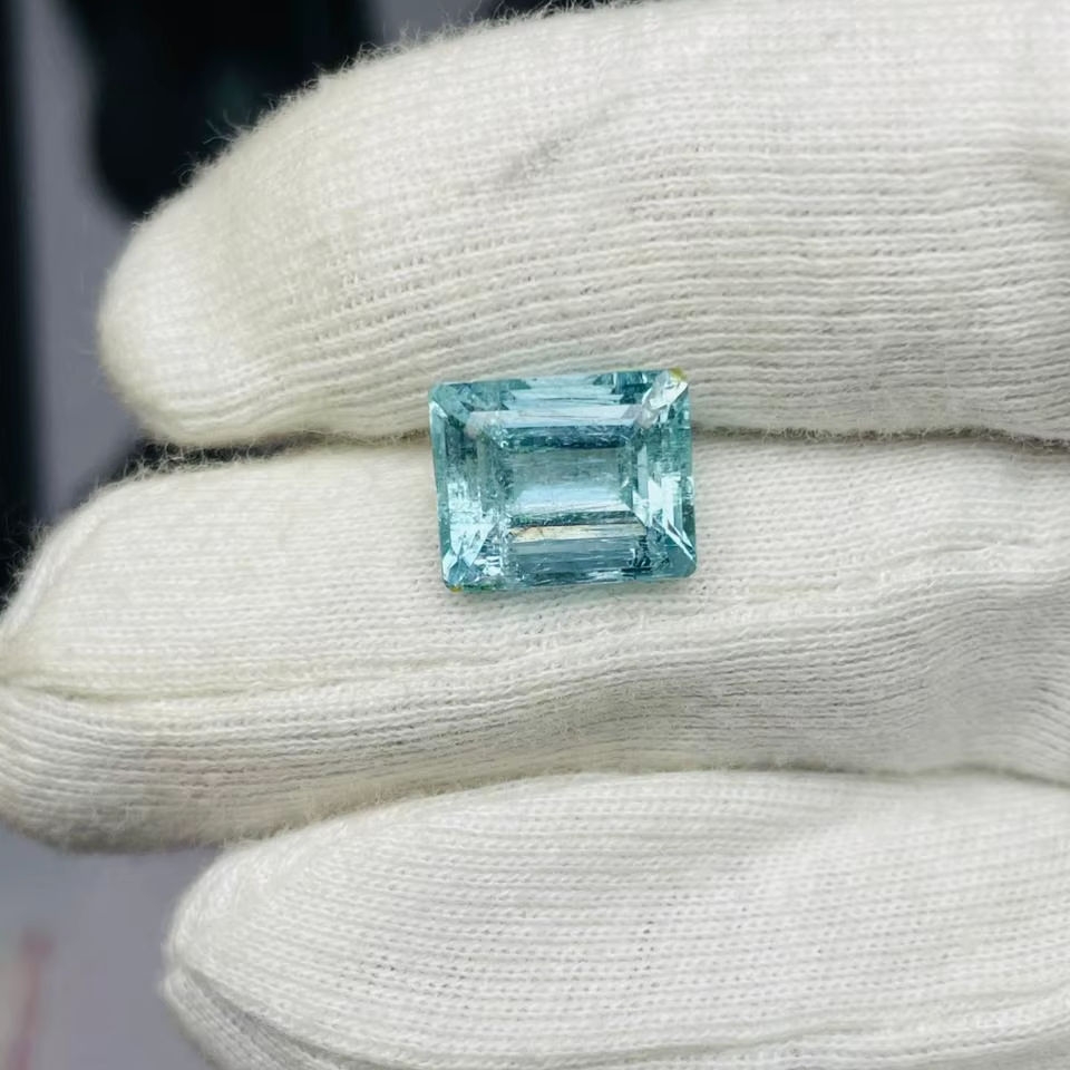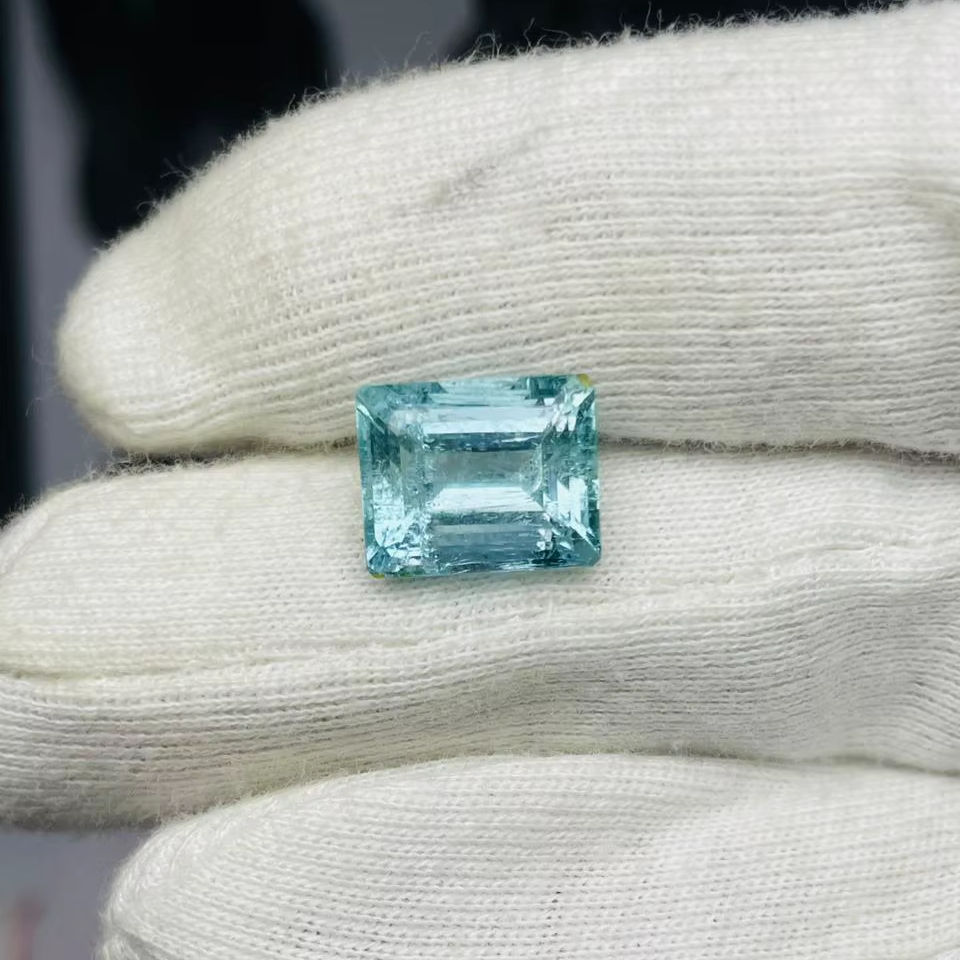 พลอยอะความารีนธรรมชาติทรงมรกต 8.70 กะรัต คุณภาพดีเยี่ยม พร้อมประกายเงางาม สีสวยงาม และการเจียระไนและการขัดเงาอย่างสมบูรณ์แบบ